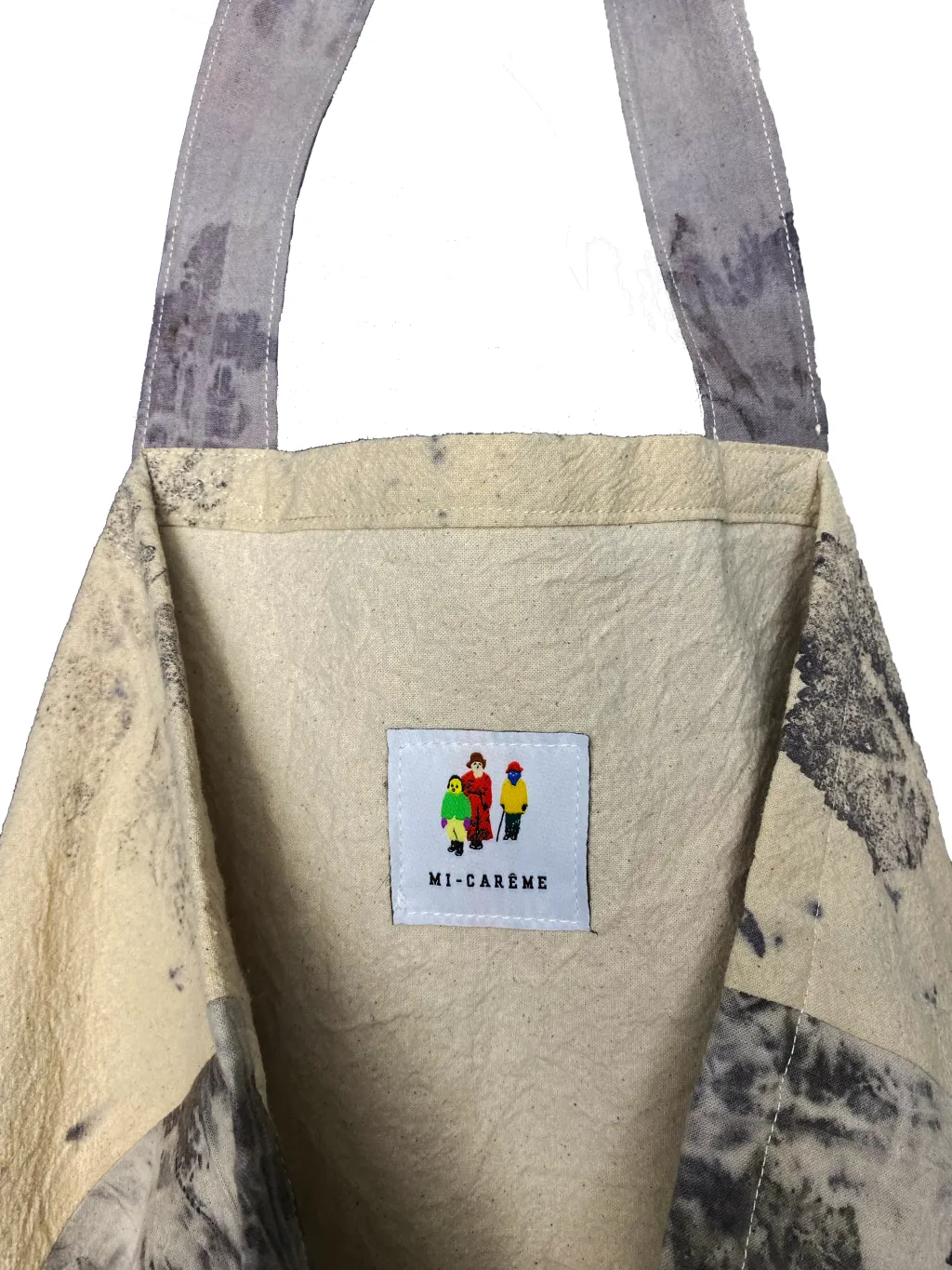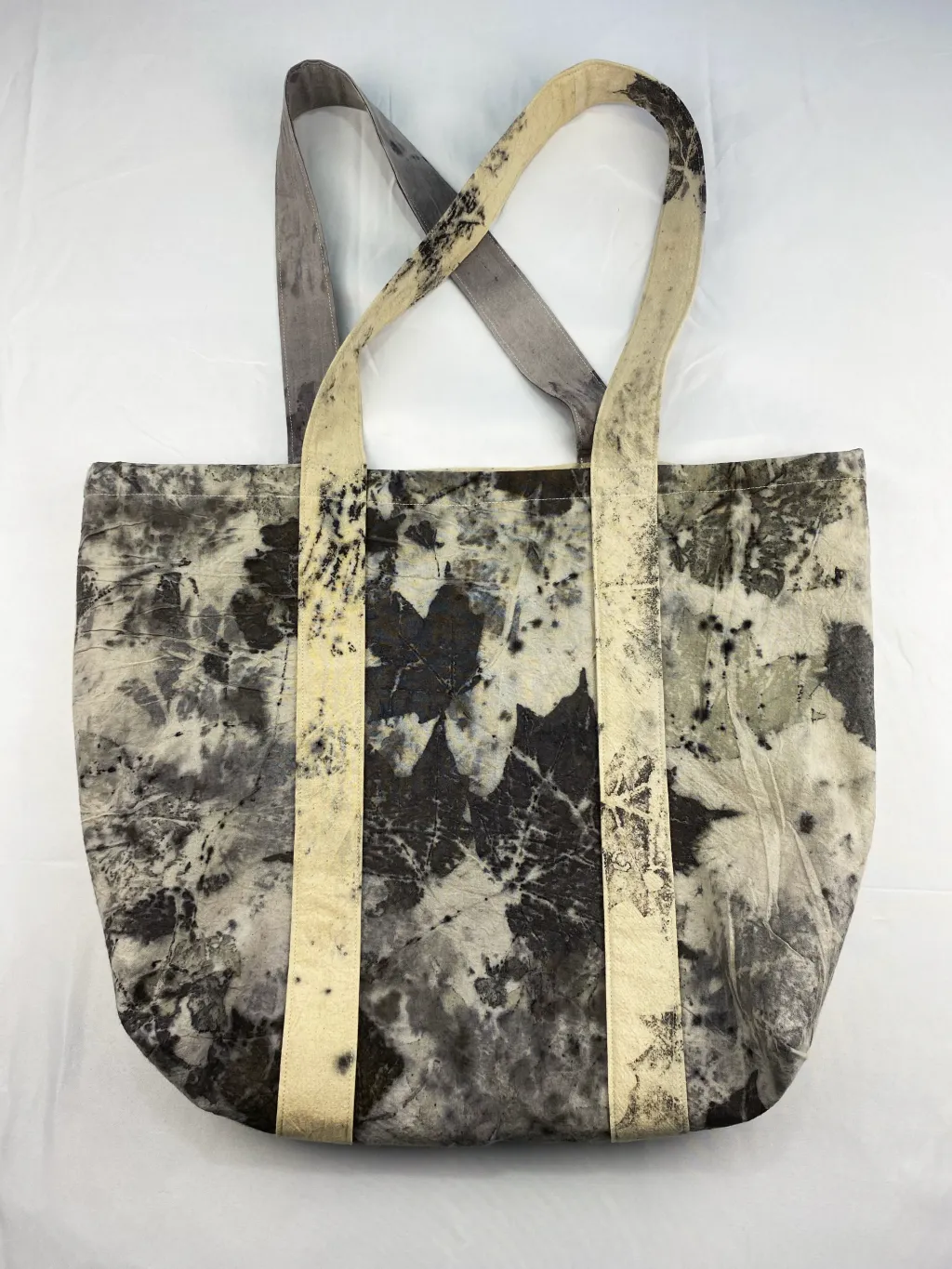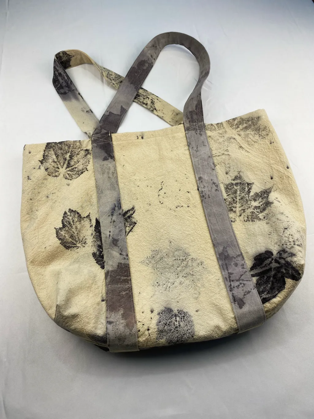 Made from 100% cotton and printed using the Eco-print technique. This technique is a plant printing process by which leaves of trees (or other plants) are printed on the fabric. The result obtained is different from one time to the next and generates images that are both figurative and abstract, like a very unique camouflage.