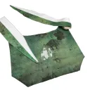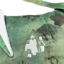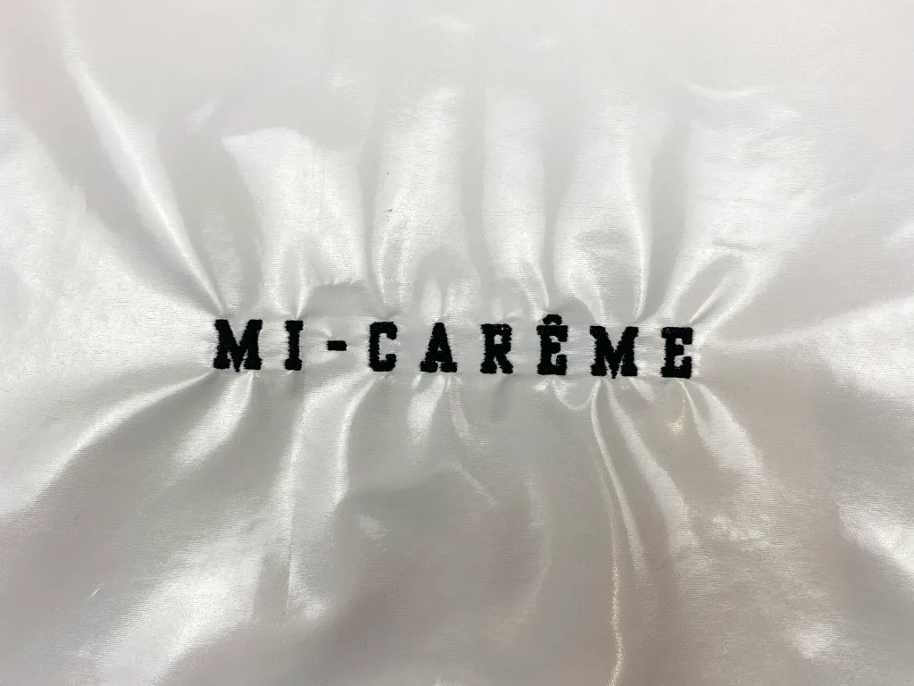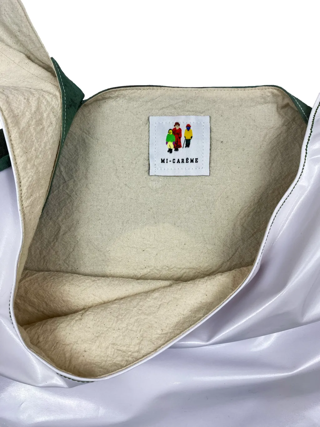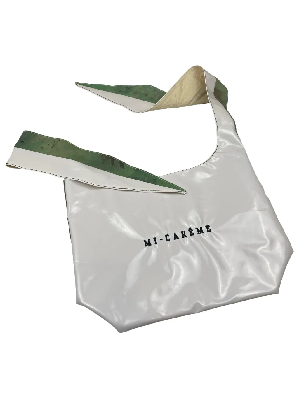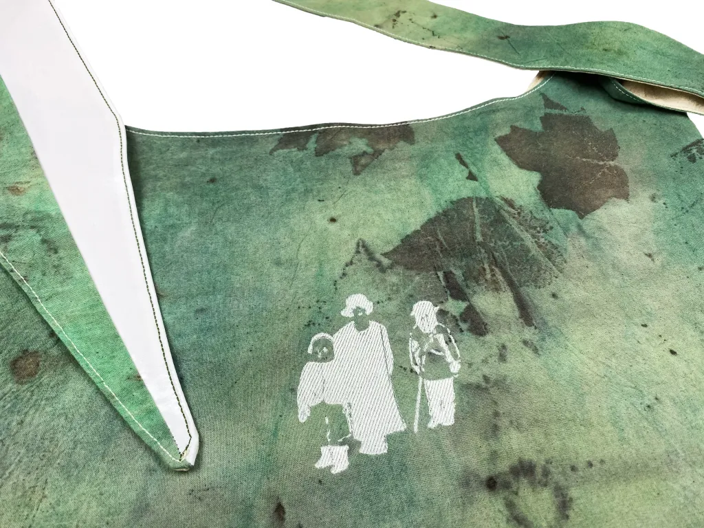 -Made in Eco-print dyed green and white spendax on which is embroidered "Mi-Carême".