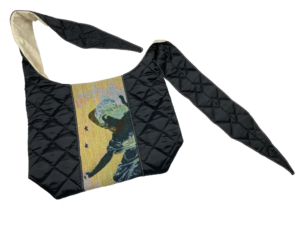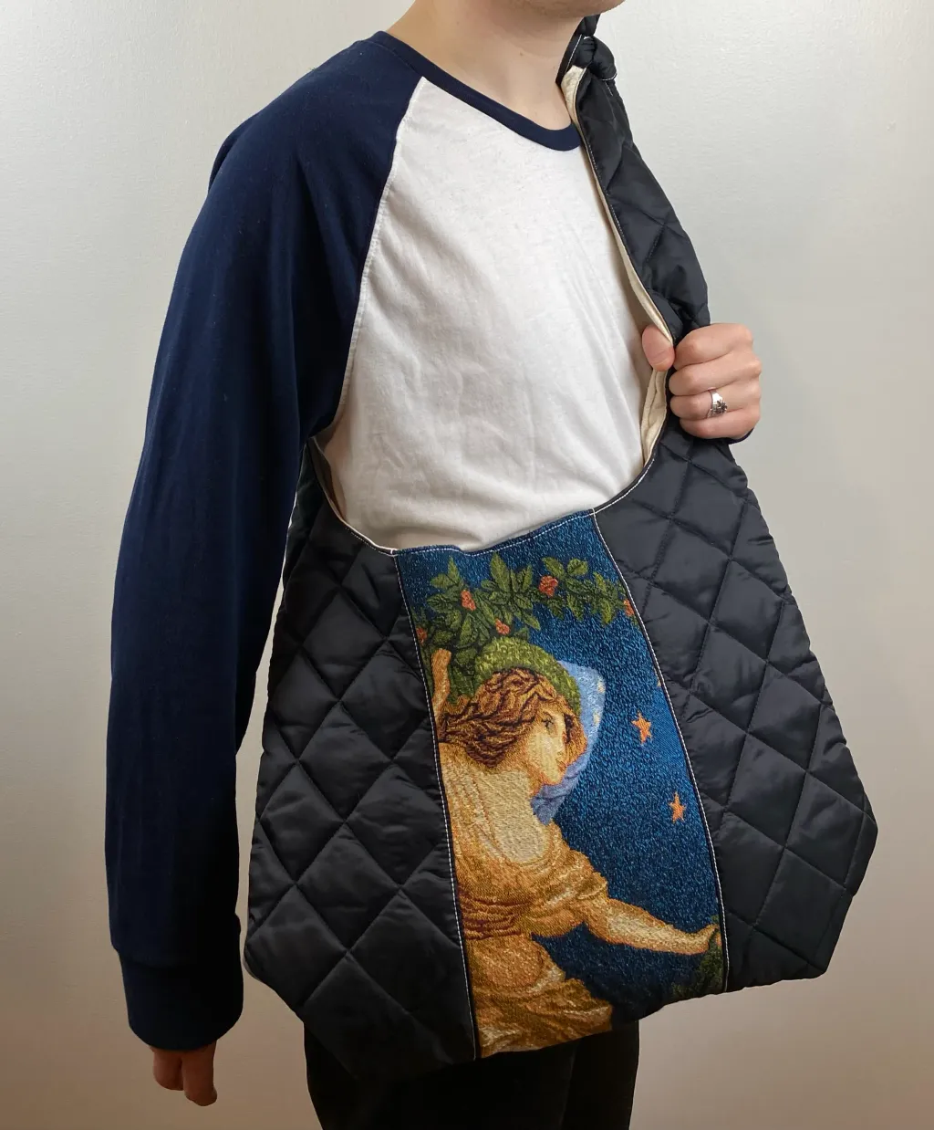 -Made of jacquard and quilted fabric. The jacquard patterns are taken from paintings from the Renaissance period.