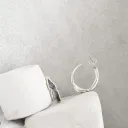 Solid sterling silver with oxidized detail, polished to a mirror finish.