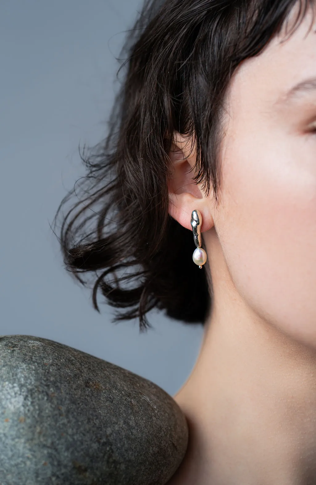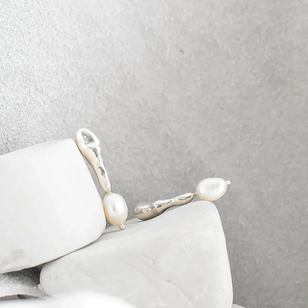 Solid sterling silver dripping down your ear lobes like icicles.The slightly mismatched Keshi pearls make for a perfect pair of statement earrings.