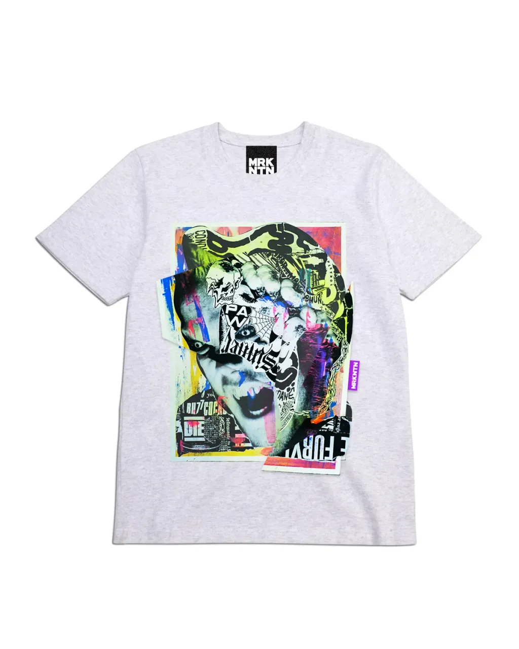 Unisex heavyweight combed cotton jersey t-shirt in heather ash. MRKNTN x TEETZ: The Lost Boys graphic printed et assembled at front. Each collage is unique.