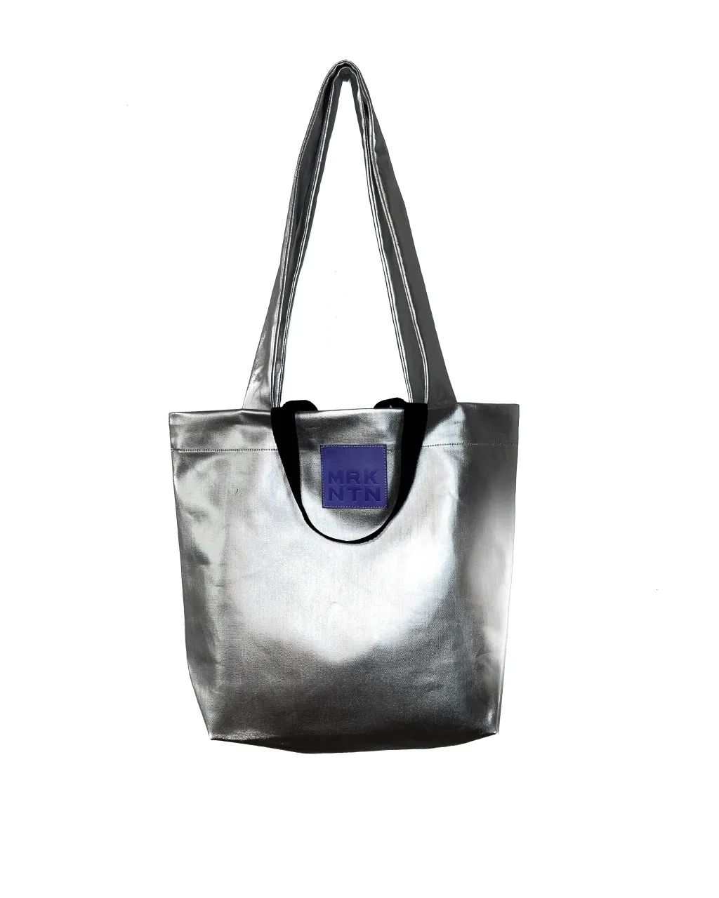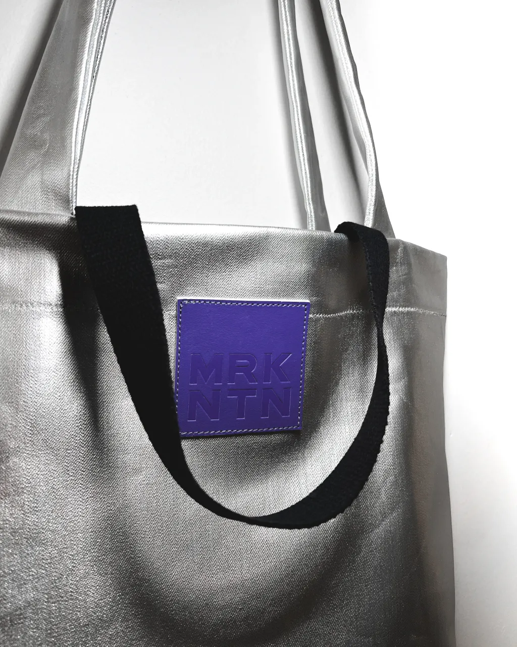 Silver coated denim tote bag