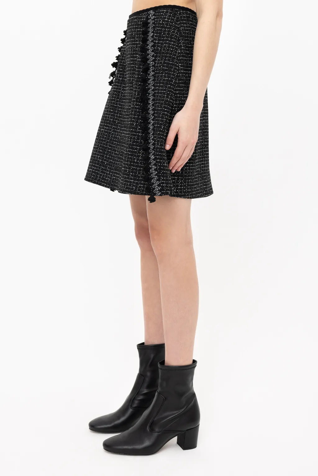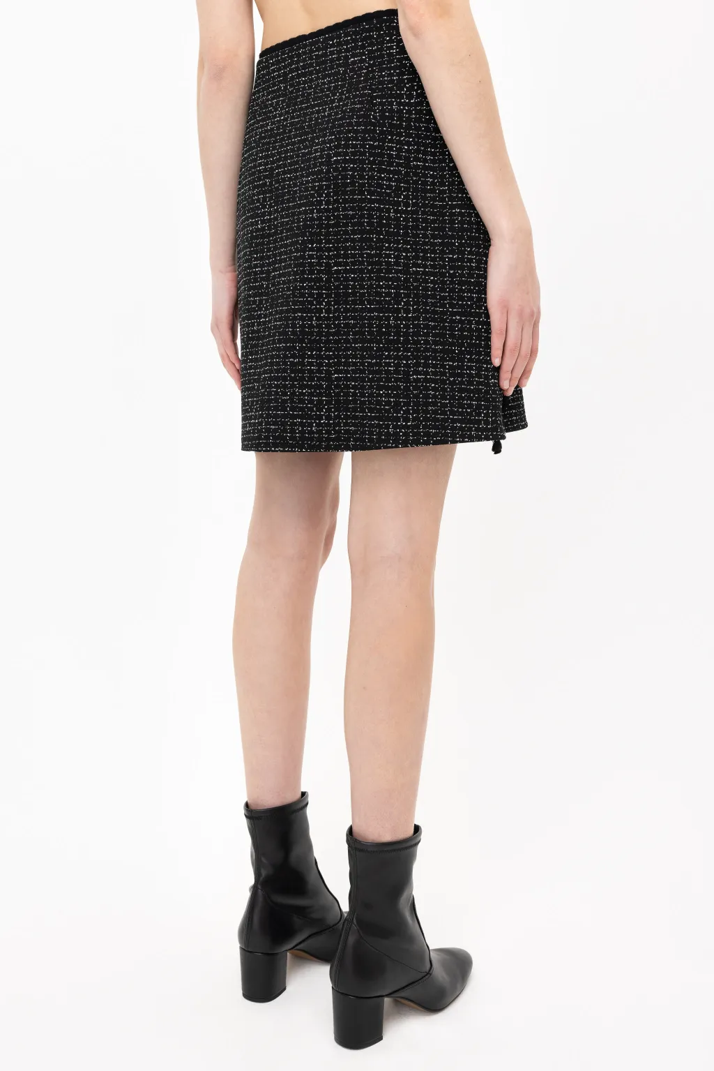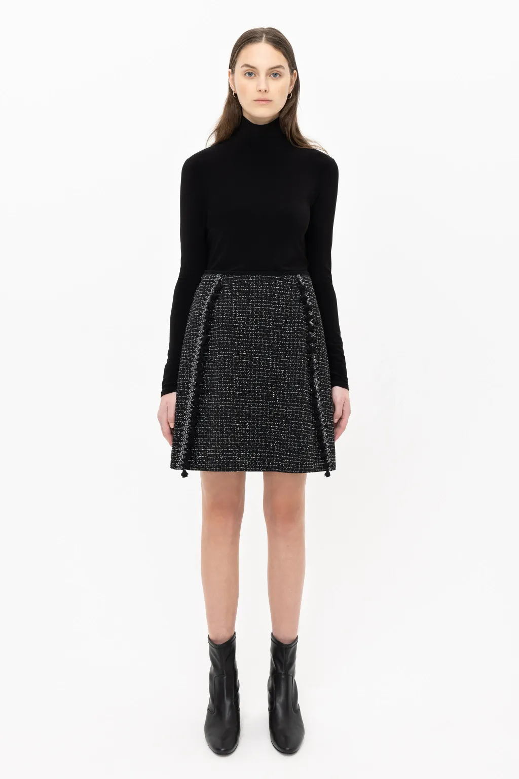 Checked skirts are a must-have for fall, and ours is no exception. Carefully crafted from small-check jacquard, it features a whimsical pom-pom detail! Each of the trims is hand-laid to emphasize the skirt's hourglass silhouette with a playful touch. A piece that marries elegance and whimsy for an irresistible autumn look.