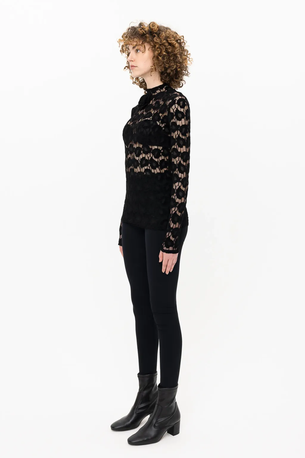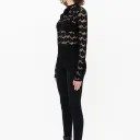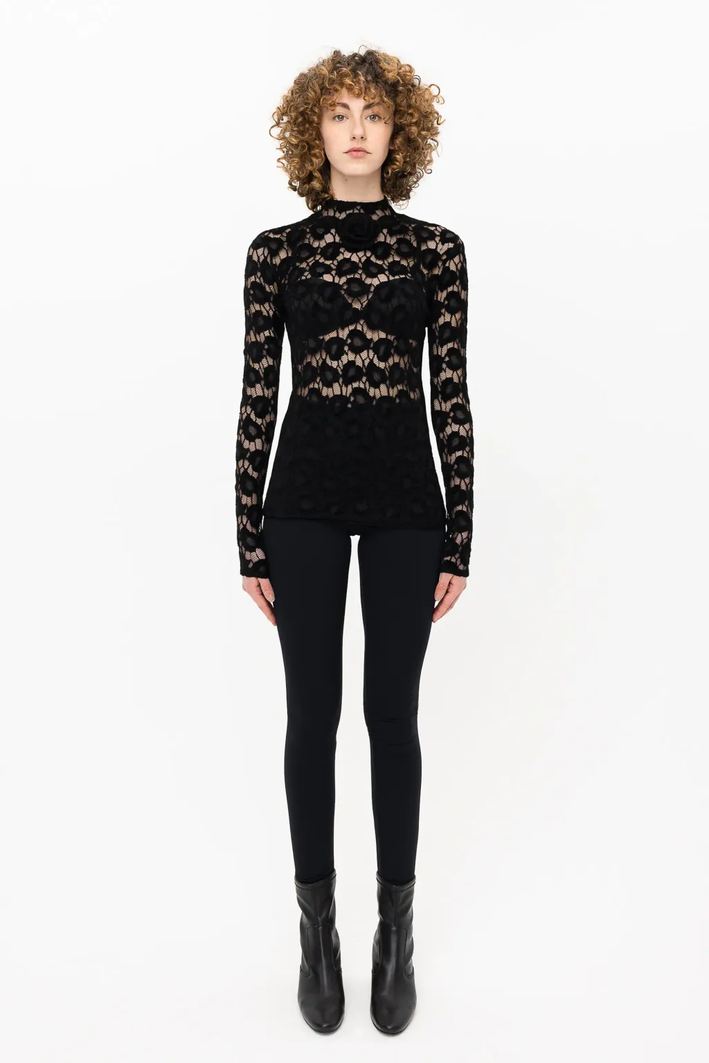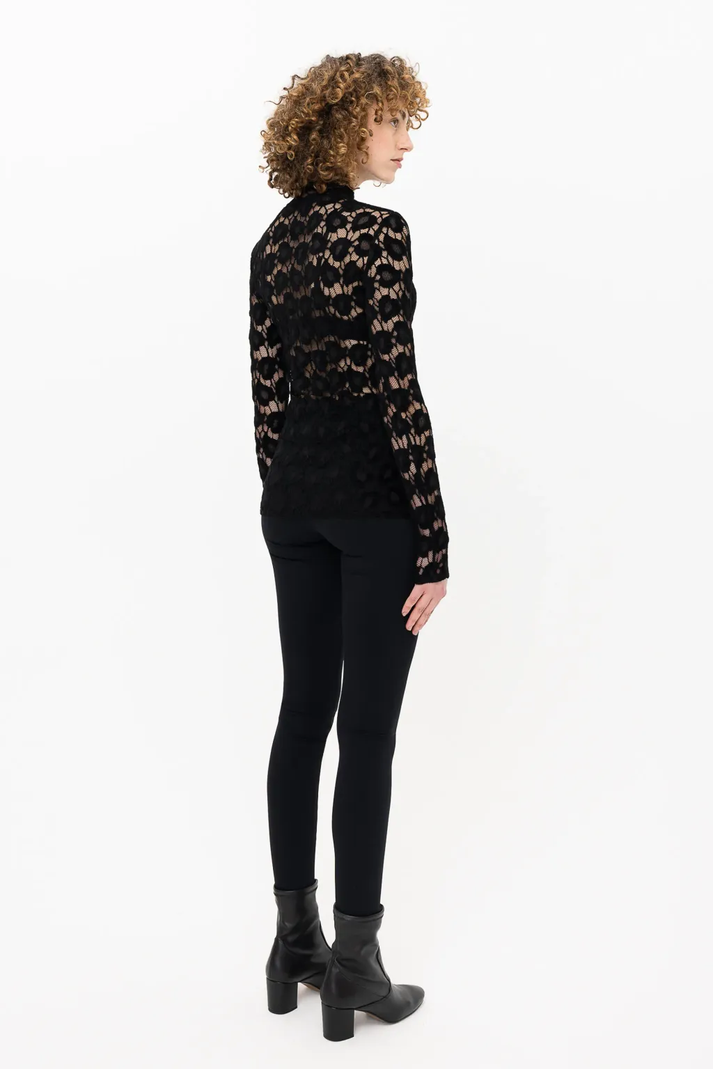Refined and bold, CAMI is an open-weave lace top with a pattern that cleverly uses negative space, creating a feminine aesthetic with hints of revealed skin. Master transparency by layering the garment with various undergarments or camisoles, for subtle control of your elegant style.
