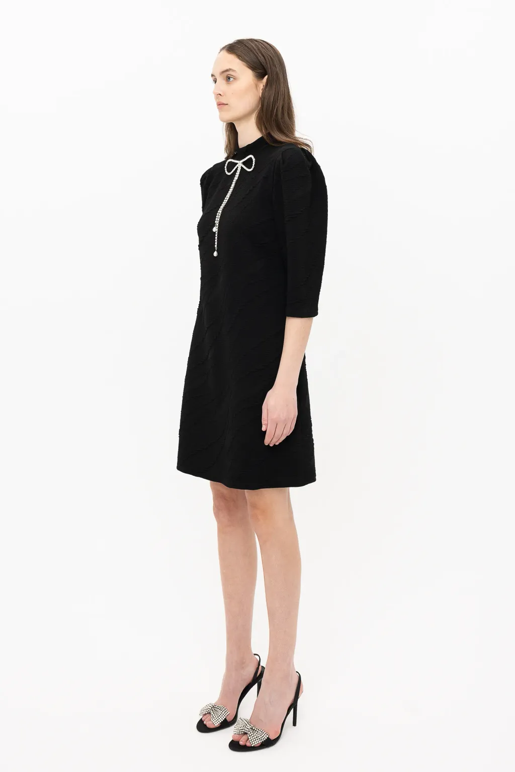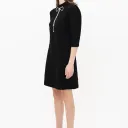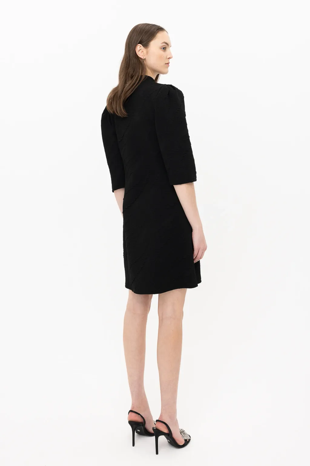 Versatility finds expression in our EDITA dress, crafted in our swirling jacquard in a straight silhouette. Embellished with a crystal buckle, this dress offers transformable elegance. The buckle can be easily removed, making it both easy to wash and create a casual look. EDITA metamorphoses with ease, becoming a sophisticated cocktail dress or a casual day dress. A piece that reinvents beauty with simplicity.