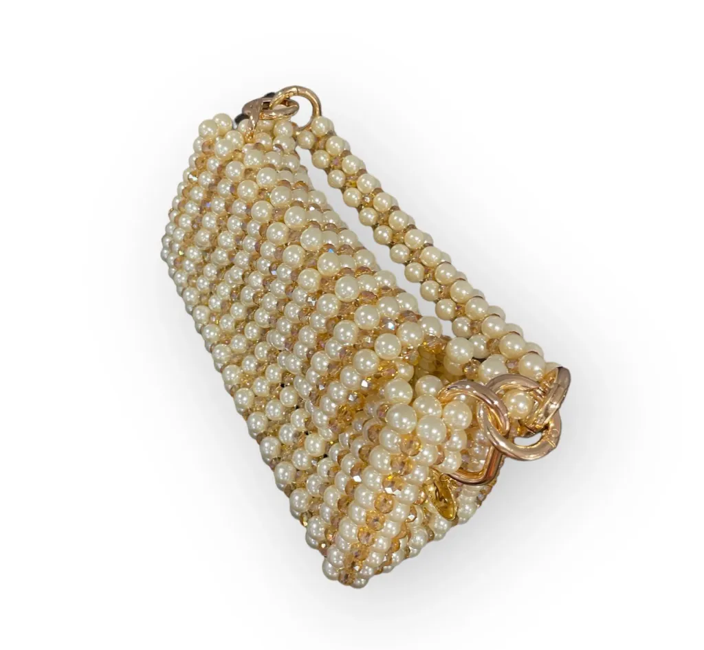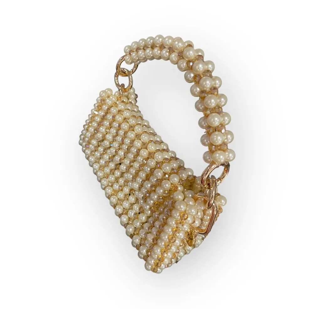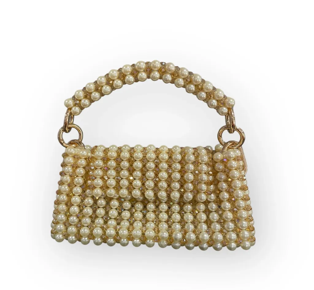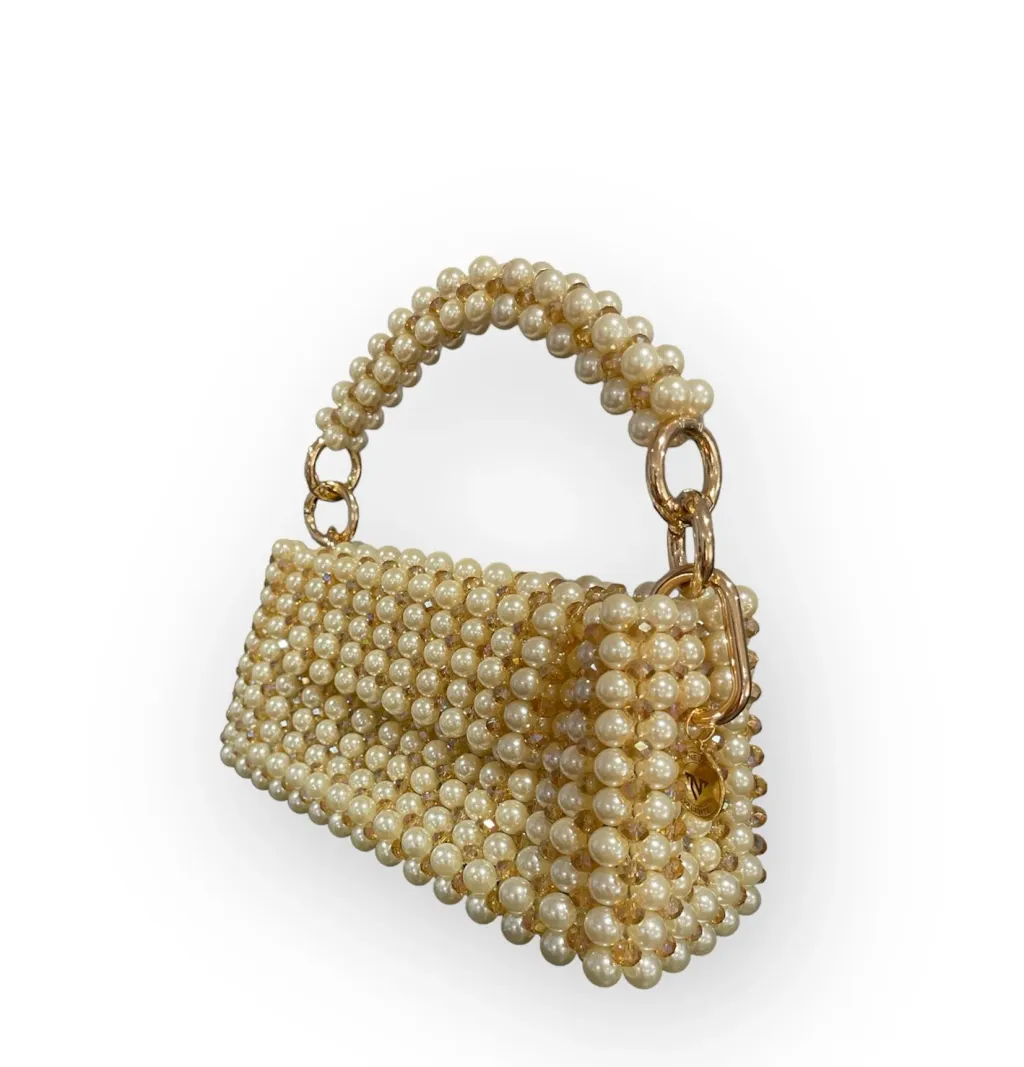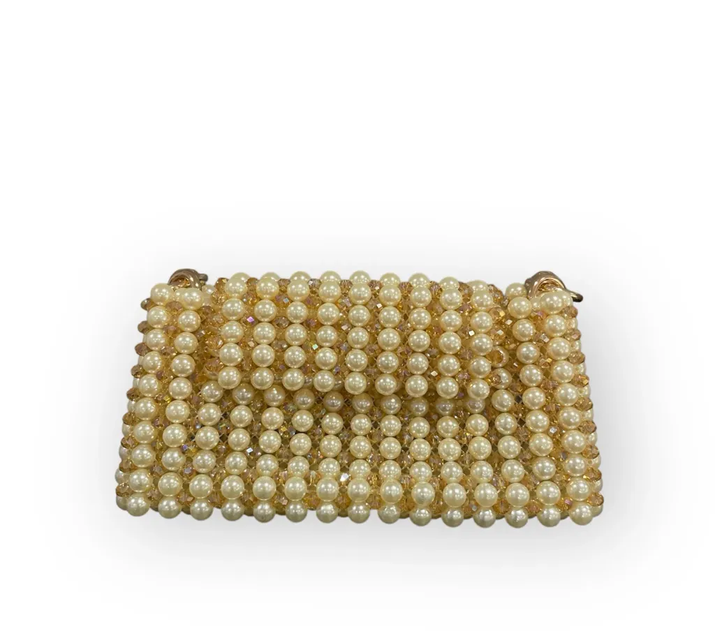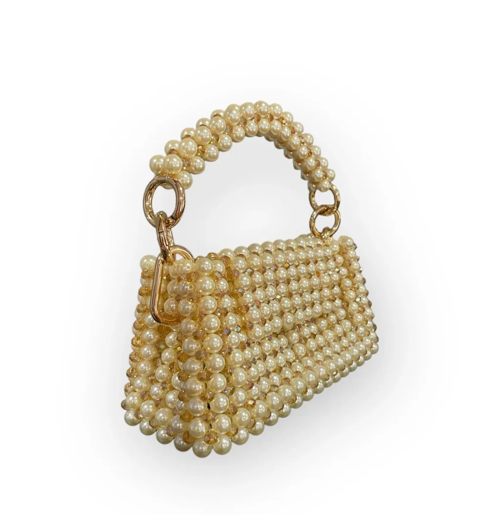 The Sydney bag redefines elegance with its dazzling fusion of crystals and pearls. The removable handle provides styling versatility.