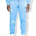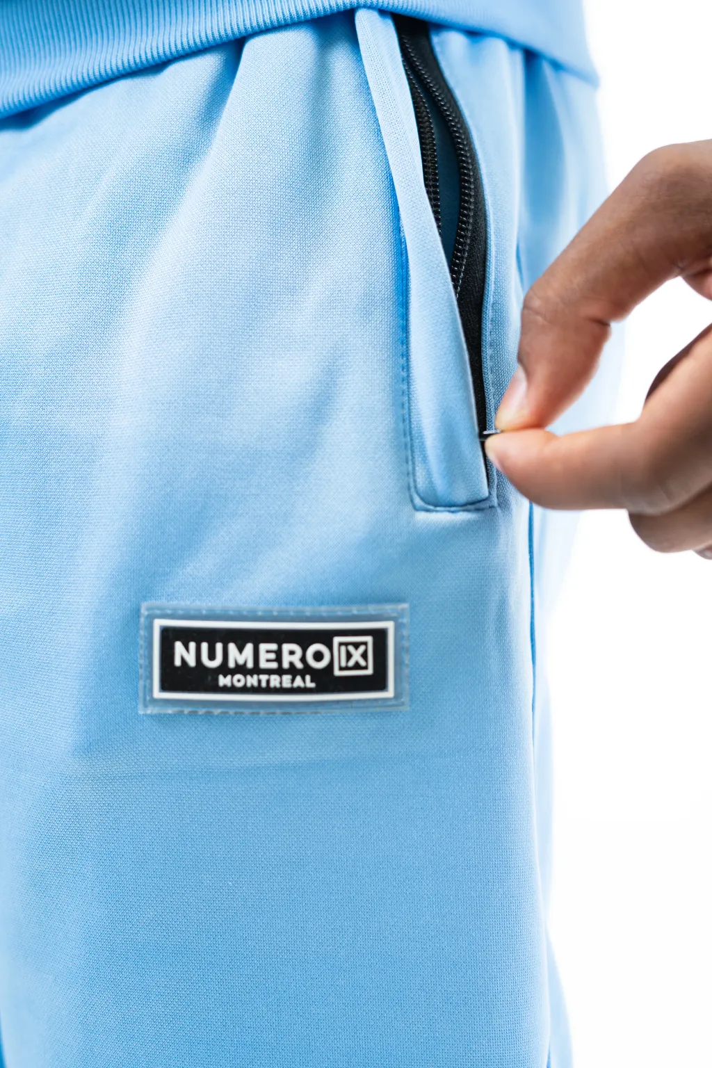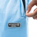 Le pantalon de haute qualité Numero IX Ice blue présente le logo "NUMERO IX" en 3D. Il est doté d'une ceinture côtelée, de deux poches avec fermeture à glissière et de poignets côtelés en bas, pour garantir un confort maximal et un look moderne.
