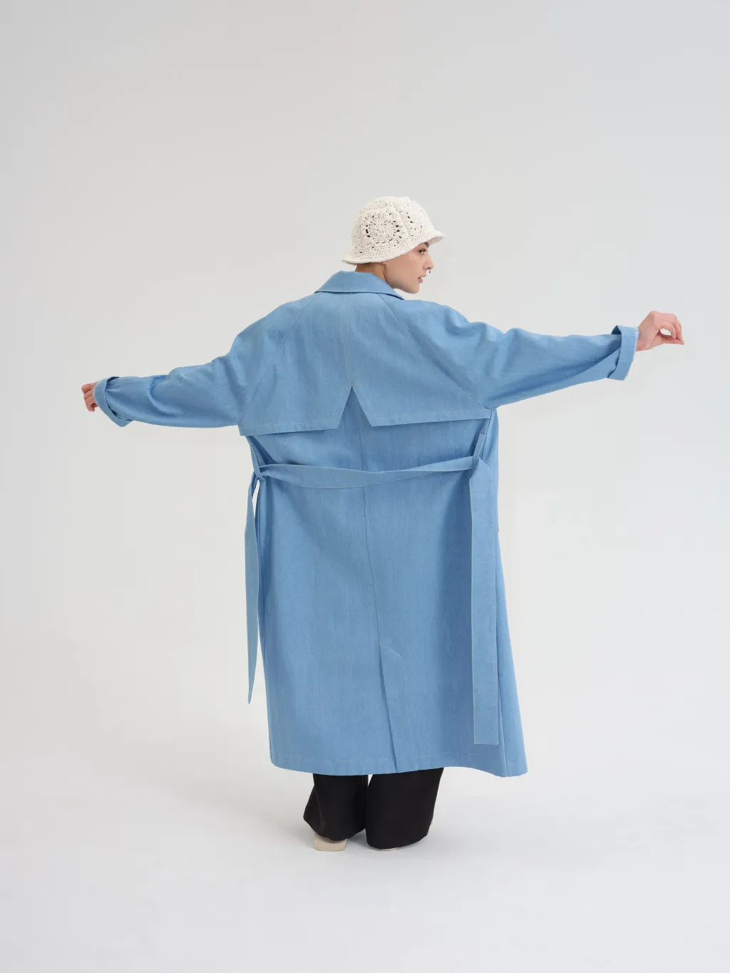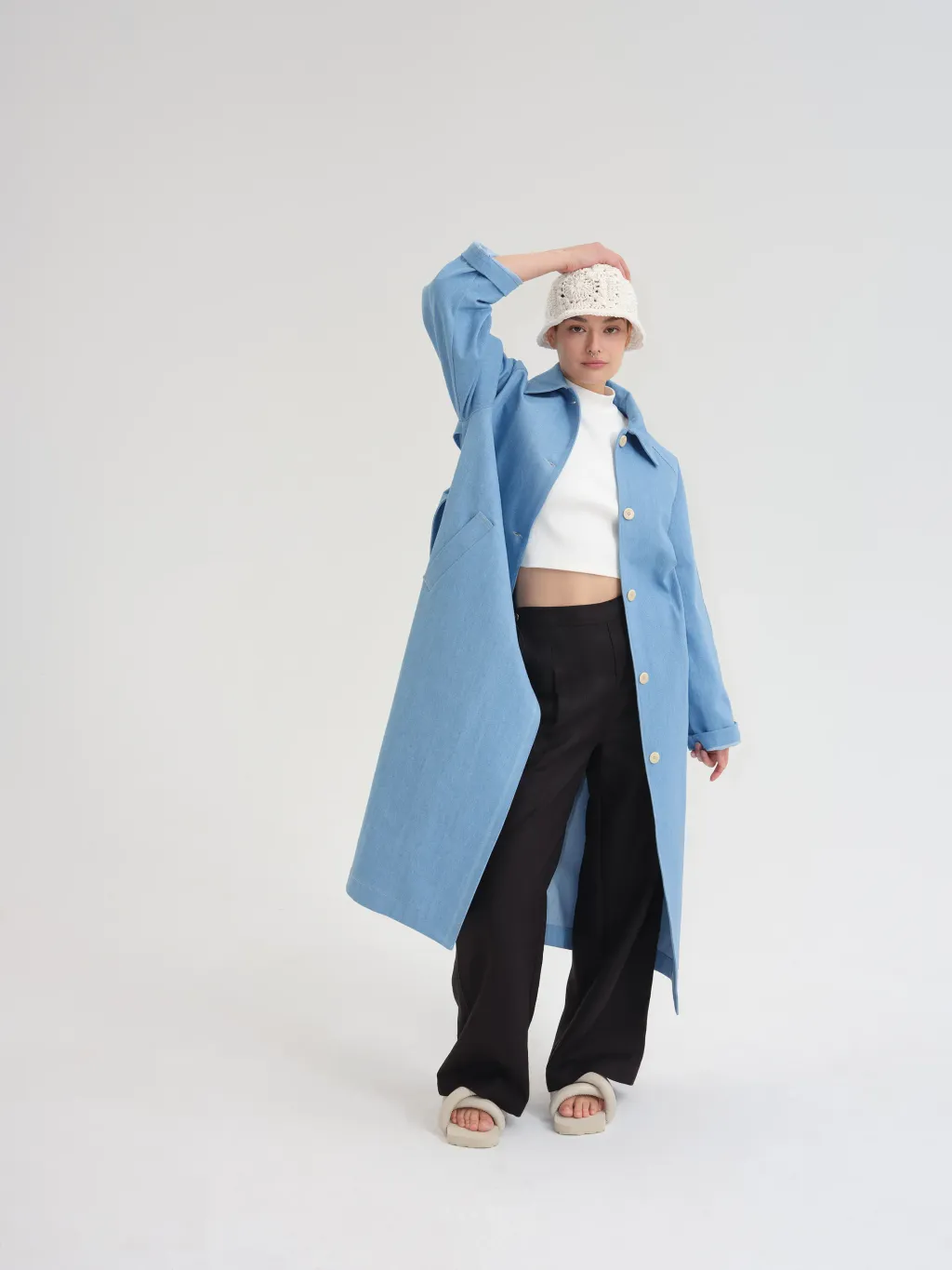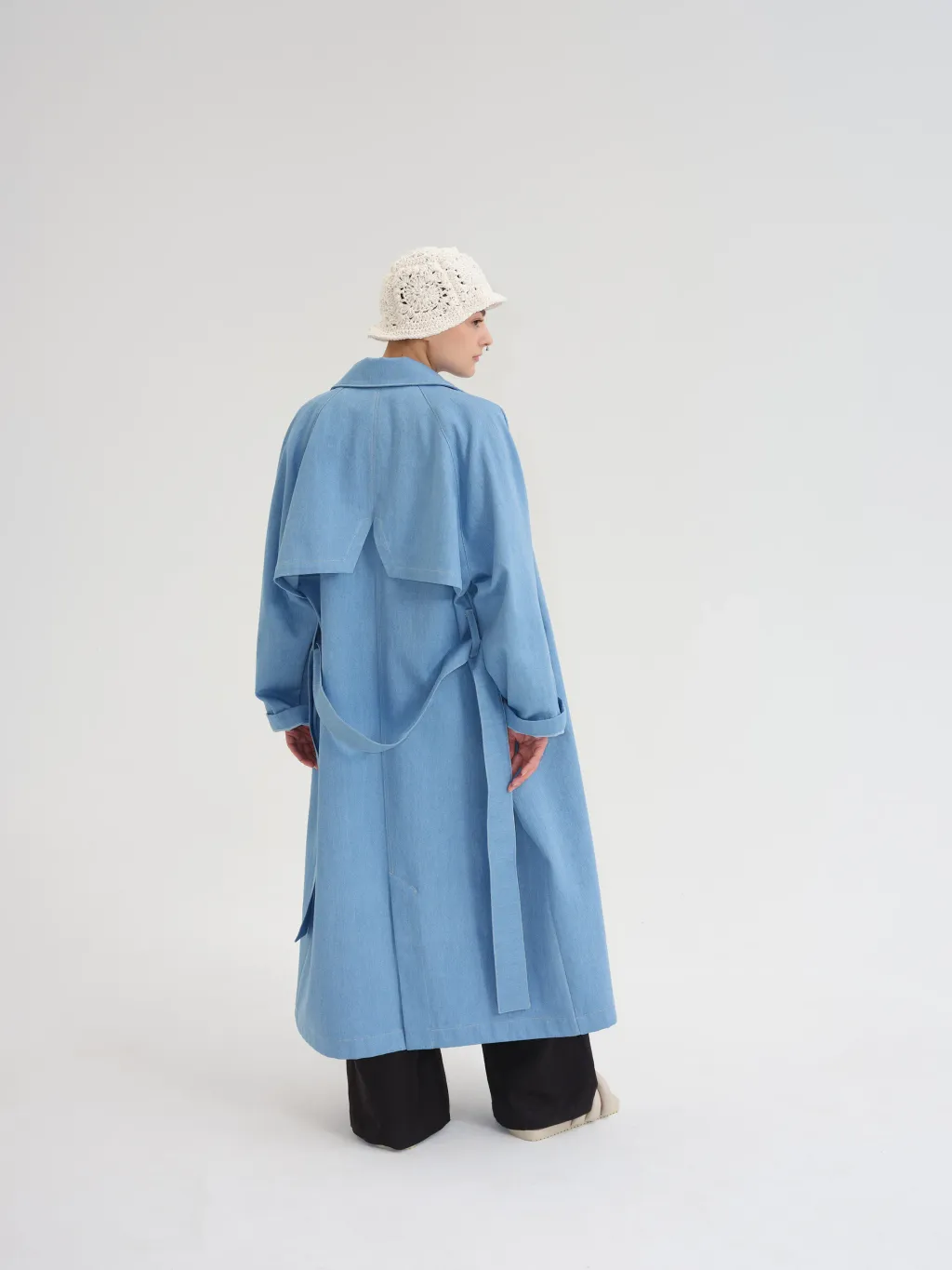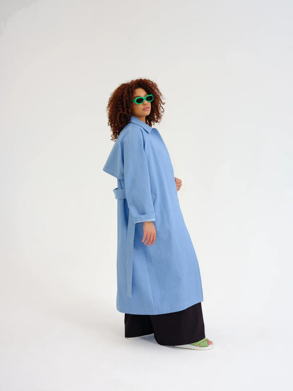 This denim trench coat is our "pièce de résistance" and that's why it's called EXTRA, because this is exactly how you will feel when wearing it. Extra long, extra wide, made of a beautiful denim pre-washed with bio enzyme, giving it a soft but sturdy feel. This statement piece will be a great addition to your transitional wardrobe.