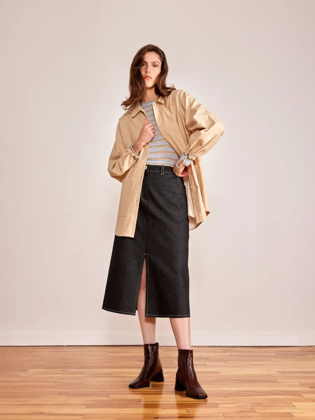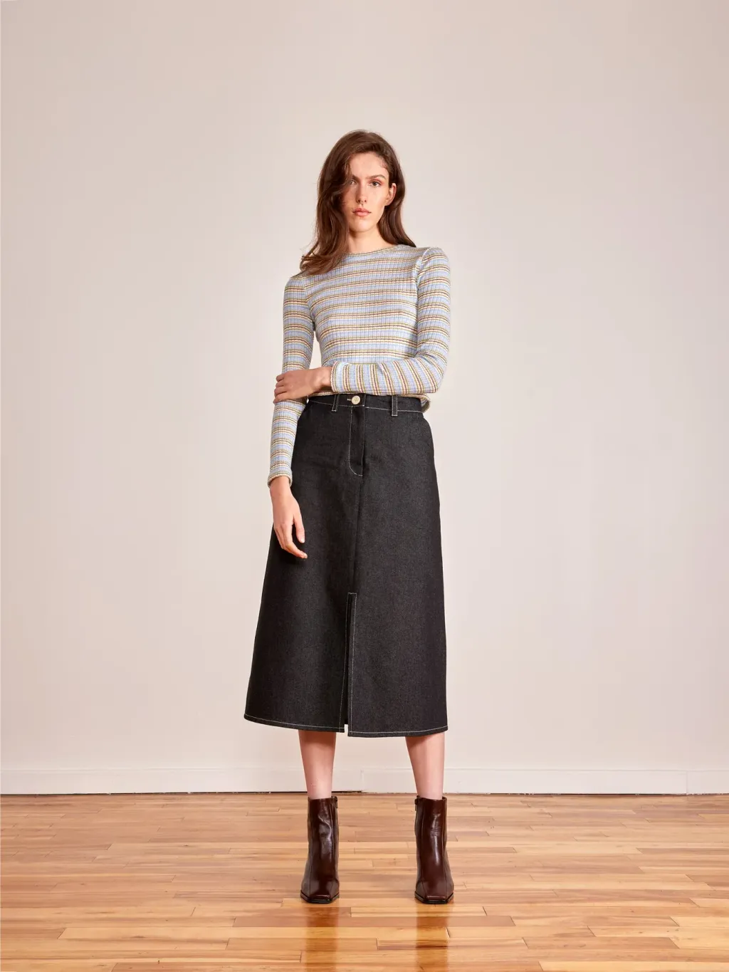 The NITA skirt is made from 100% cotton in black denim with contrast stitching that gives this piece all its authenticity. You'll notice many looks with this piece because IT SIMPLY GOES WITH EVERYTHING!