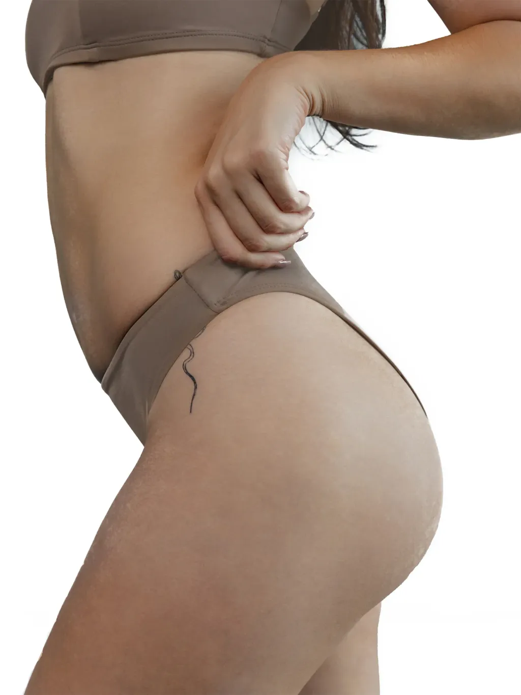 The Lola bottom is the perfect swim bottom that can be worn high or low on the hip! With thin side straps and cheeky coverage, this cut is designed to elongate the leg. The Lola bottom has a seamless and sleek frontside while the backside is designed with stitching to hold in place.