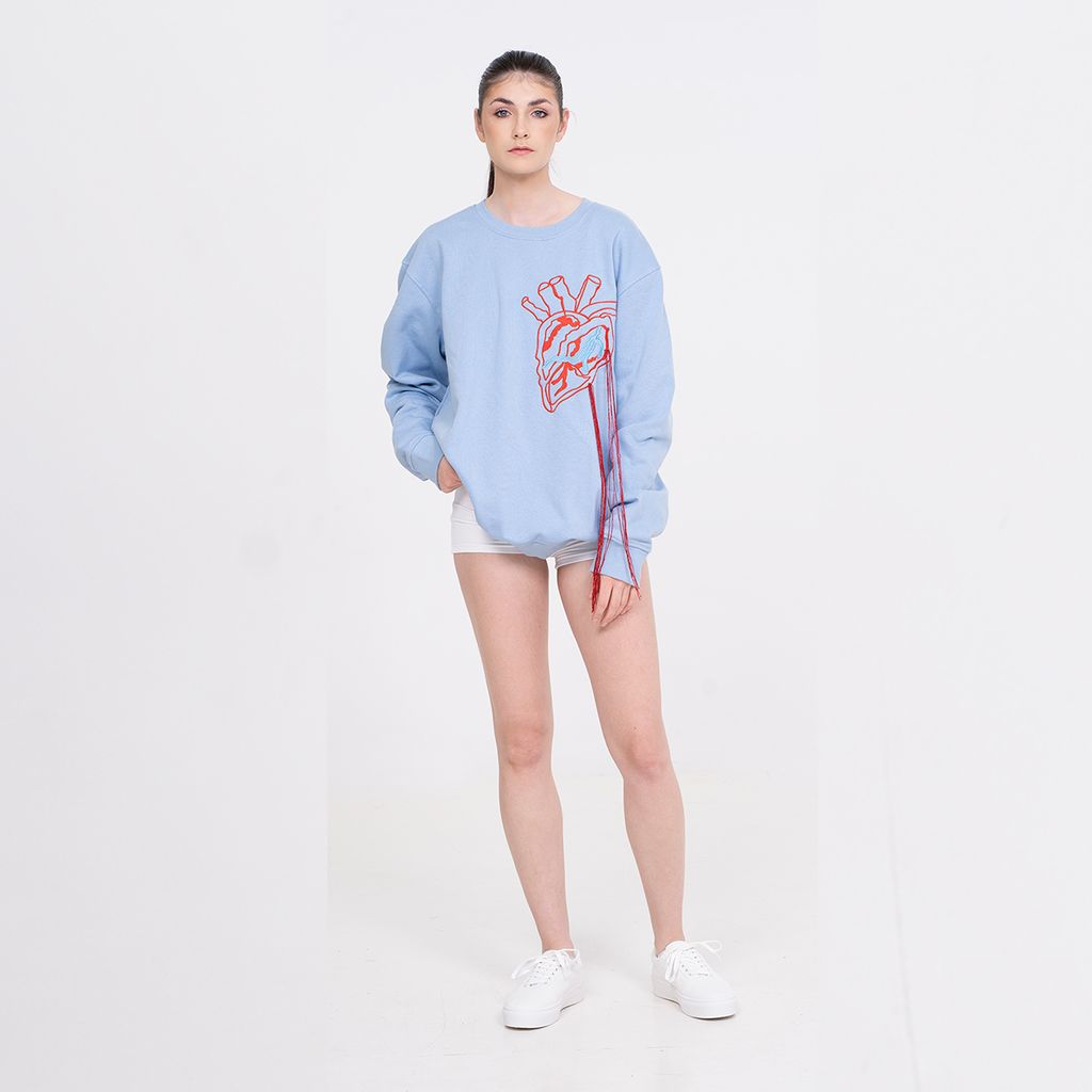 Baby Blue Oversized Crewneck with Embroidered Heart
