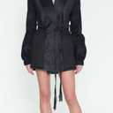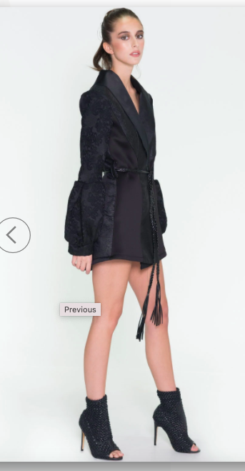 Little dress-jacket made of Black printed jacquard, Waxed printed silk and sleeves made of neoprene (scuba) - perfect to give a more casual look to your glam soirées or simply wear it with a pair of sandals this summer