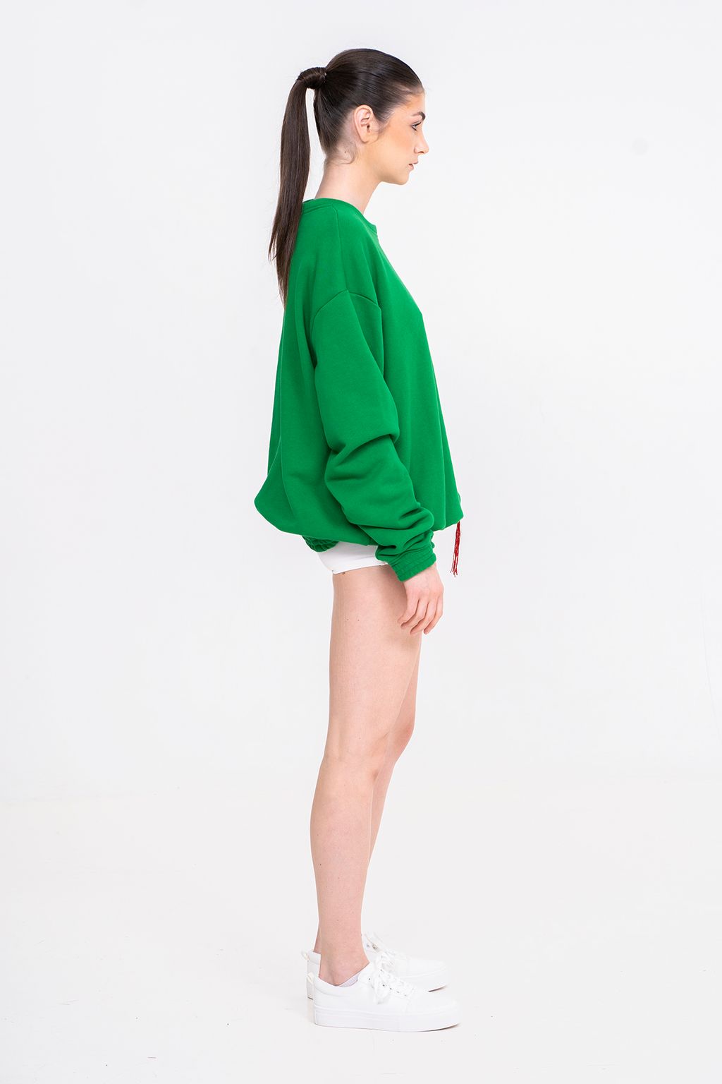 Italian Cotton fleece fabric embroidered with an oversize heart. A perfect streetwear statement. Absolutely confortable for day or night looks.