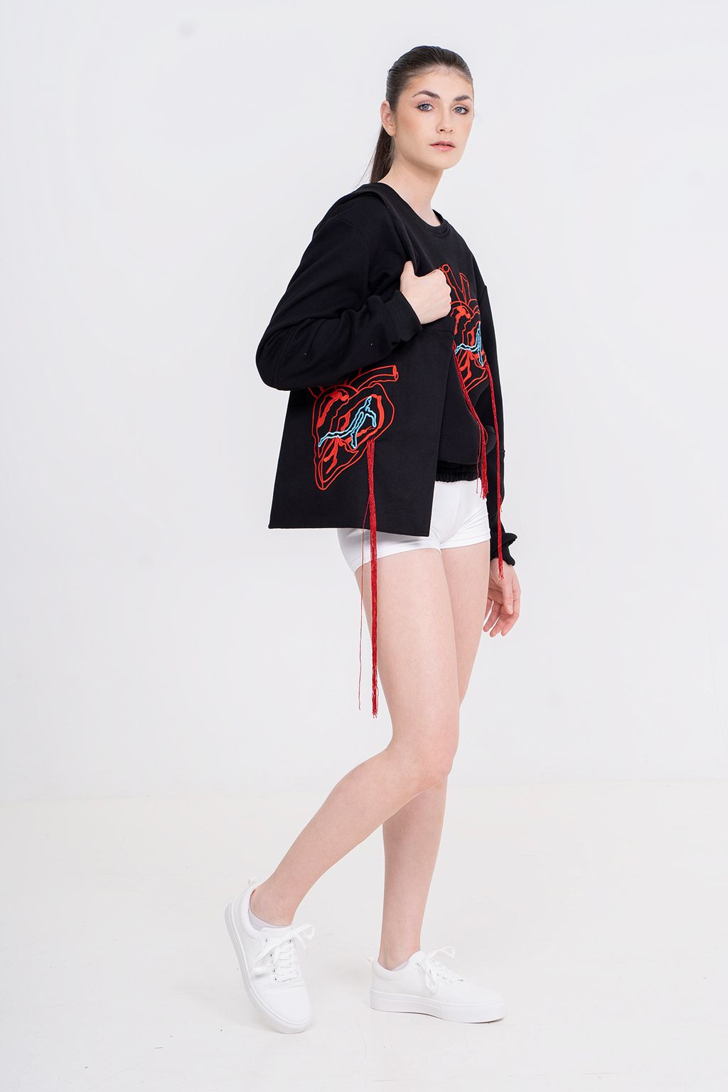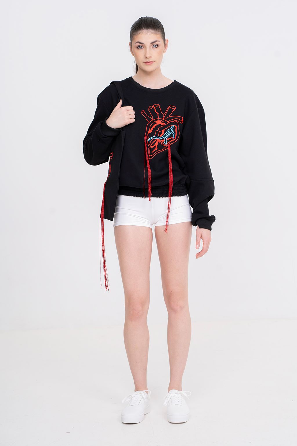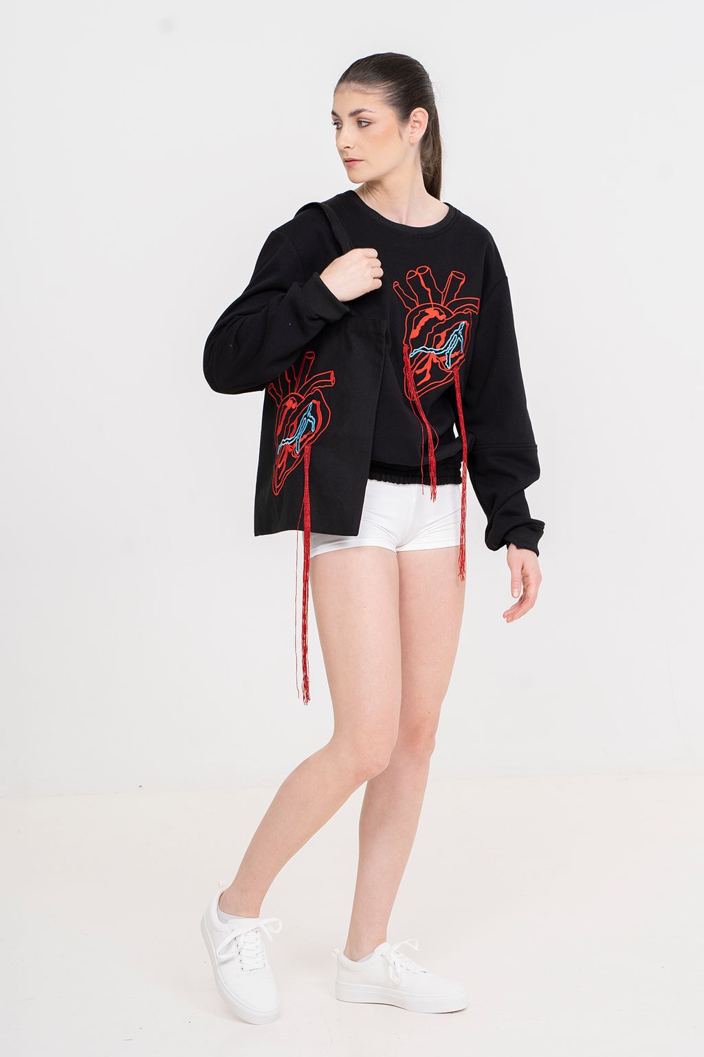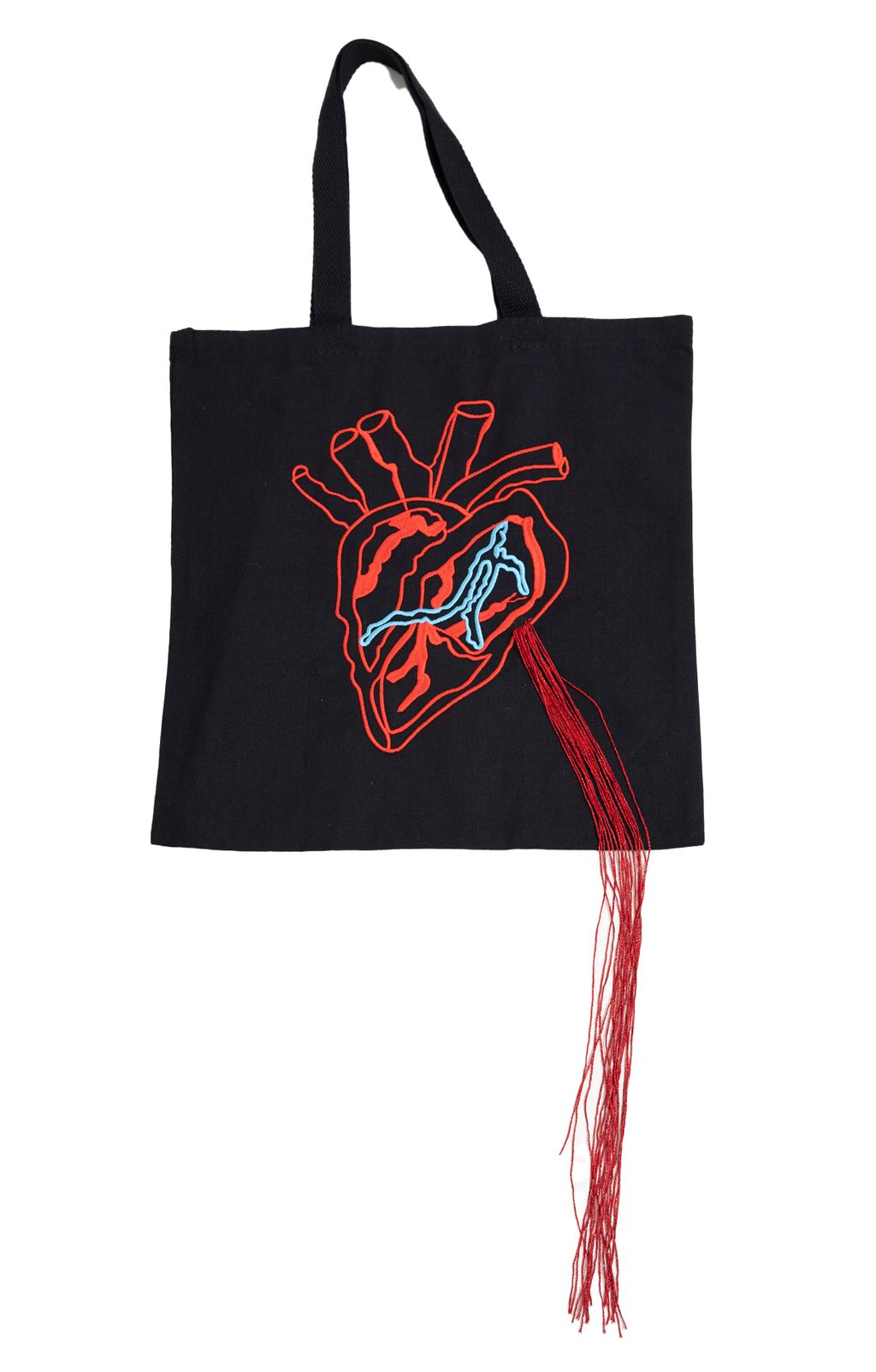 Canvas Tote Bag with an oversized heart embroidered and dripping franges. The perfect statement accessories. You can combine with the Crewneck of the same color for a total impact on the beholder eye.