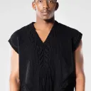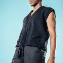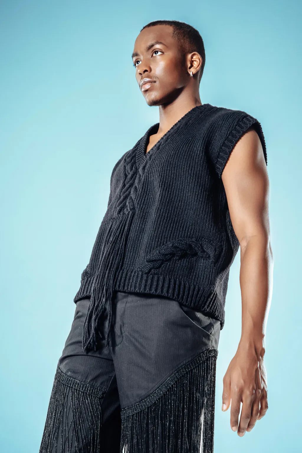 This is a vest made of Kamouraska wool. Kamouraska is a municipality on the south shore of the Saint Lawrence River in the Bas-Saint-Laurent region of Quebec, Canada. The farm where this wools is from belongs to quebecers sheeps. Their wool is then process and dyed in the region as well. The wool thread is then use in the knitting atelier in Montreal to create beautiful 100% made in Quebec garments. To be able to produce a garment that is ecological at that level is rare. This raw material can be desconstructed and tranform in another piece. This vest can be also decompose in the nature and cause zero dammage to the environmment.