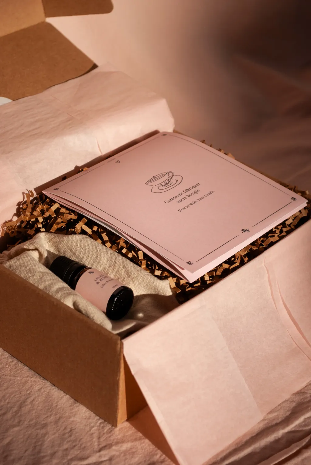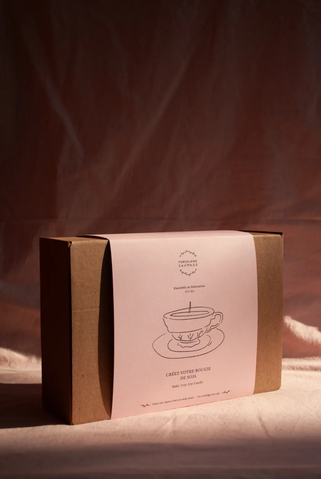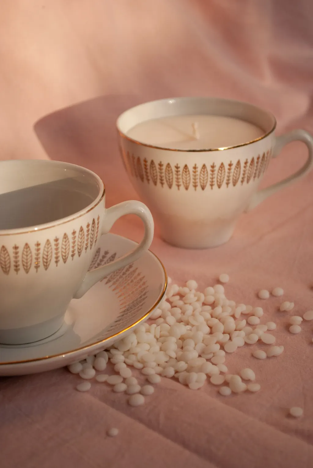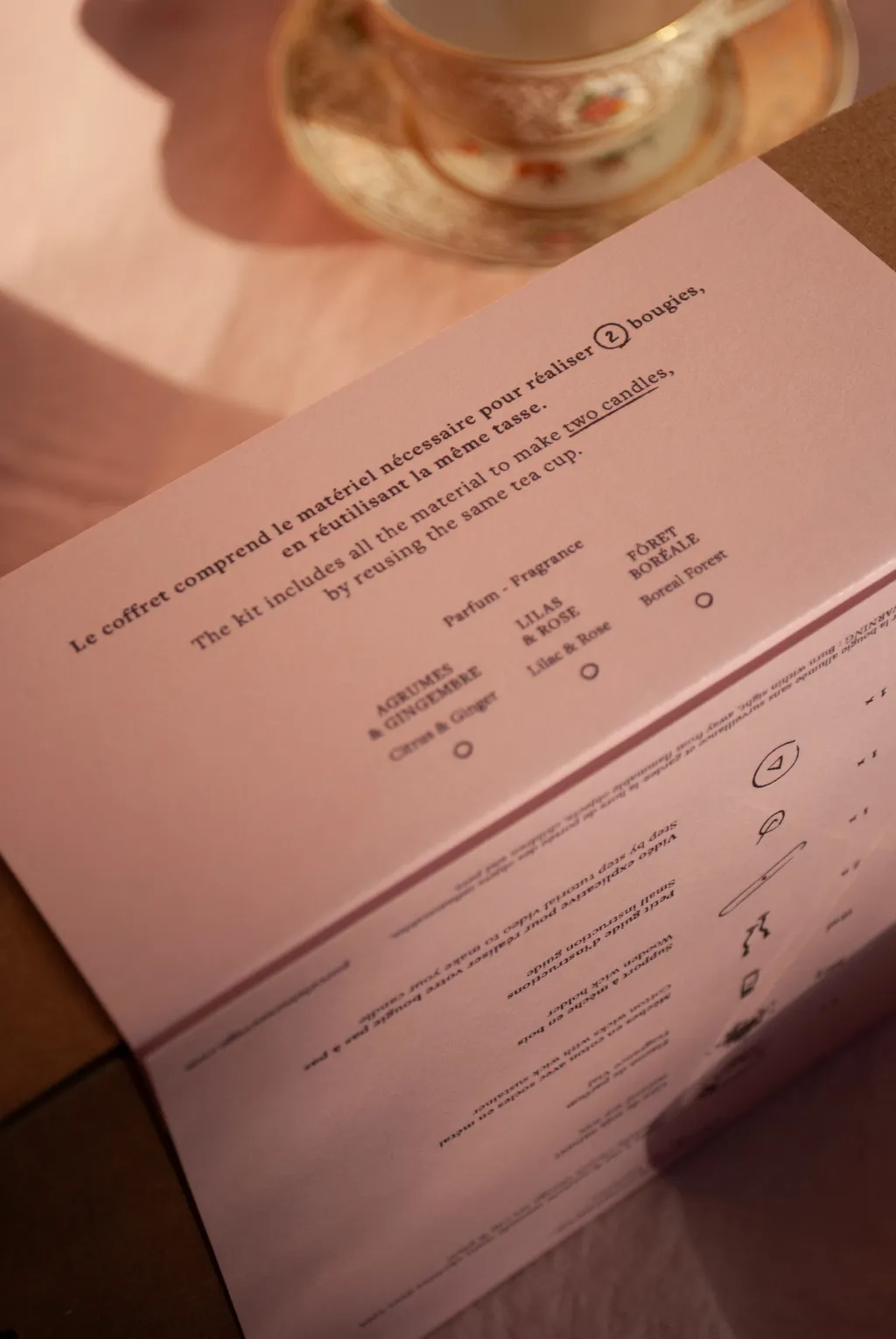 Each box is composed of a vintage cup selected by me and all the necessary materials to create 2 candles: you can either create your candle and its refill, or organize a small workshop with a creative friend.
