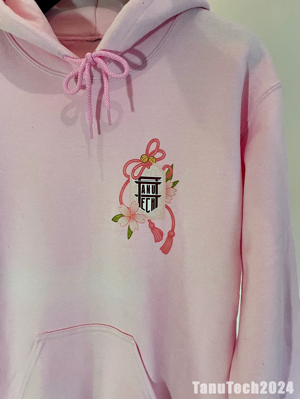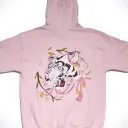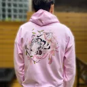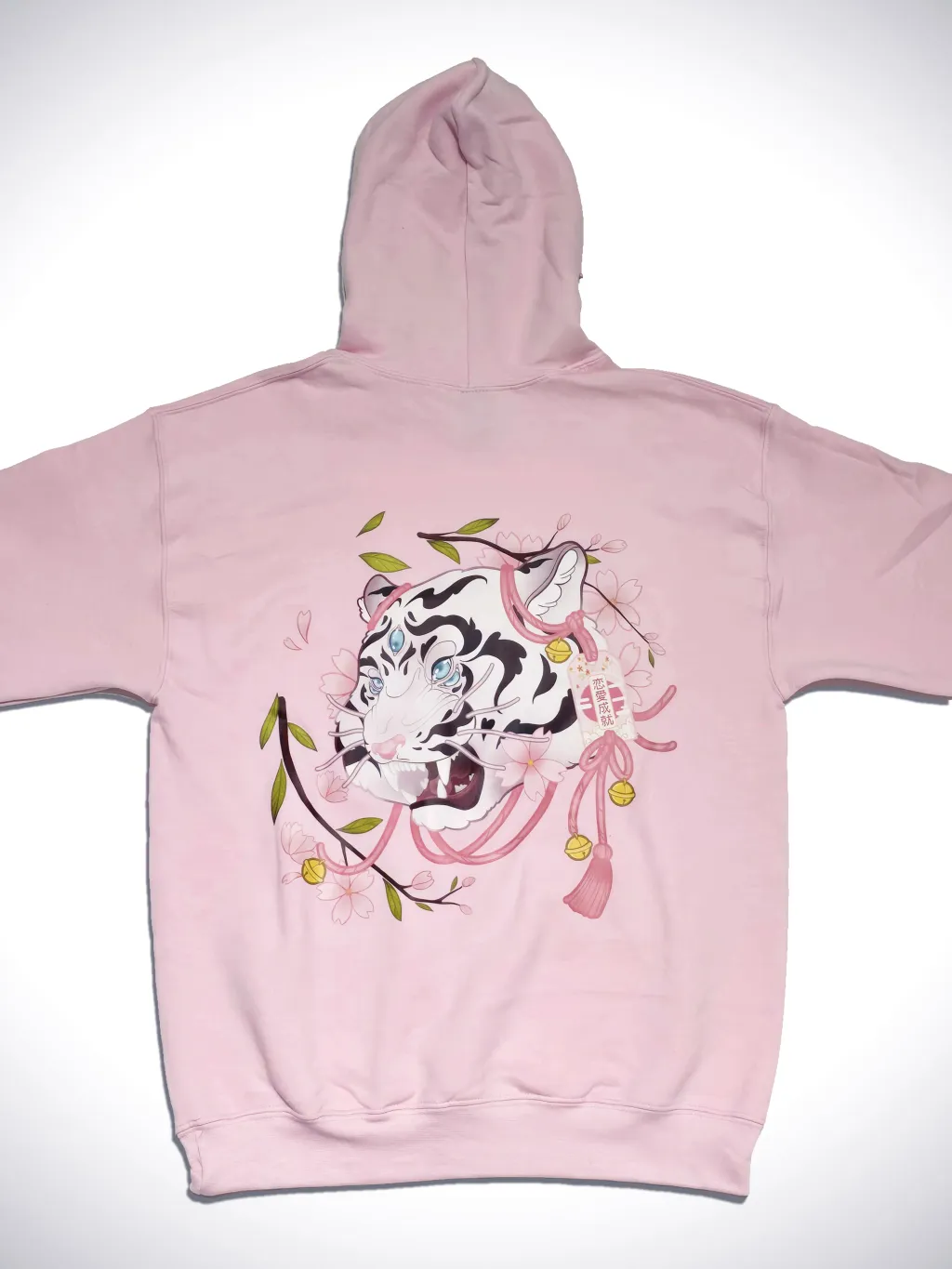 In this creation, the untamed strength of the tiger meets the subtle elegance of sakuras. Featuring a majestic white tiger on a delicate pink background, this design embodies both strength and grace. With subtle details from traditional Japan such as cherry blossom petals, omamori cords, and bells.