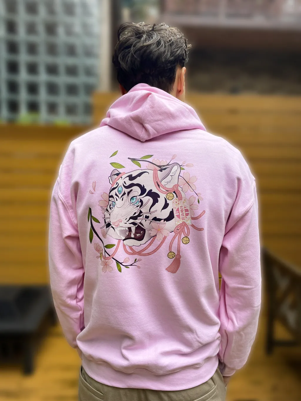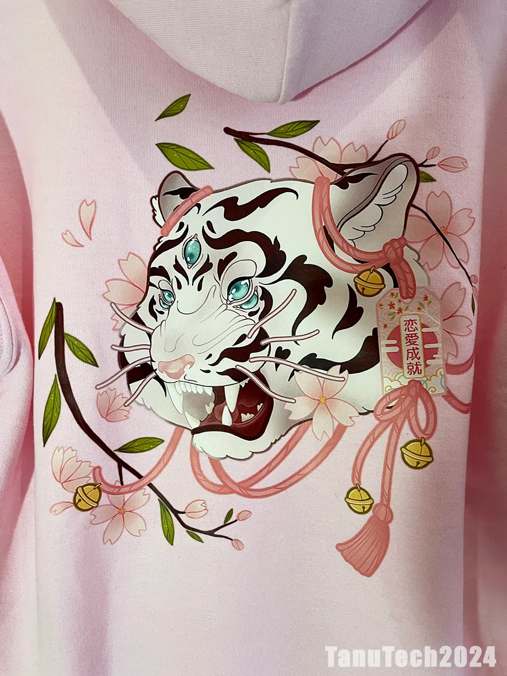 Dive into the captivating world of TanuTech's "Omamori White Tiger" hoodie!