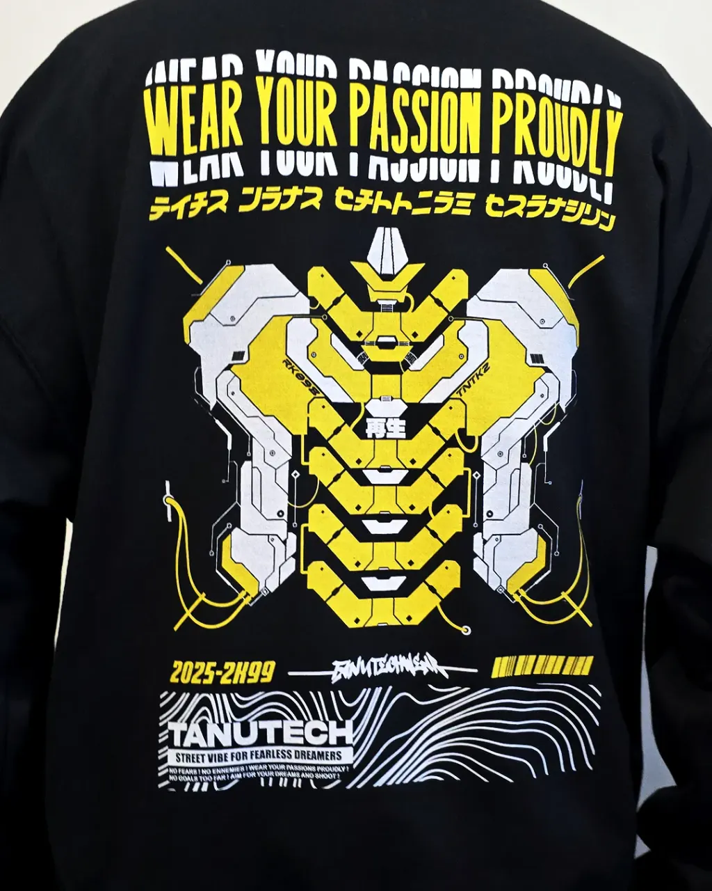 Back design: A futuristic cyber armor, captivating and bold.