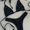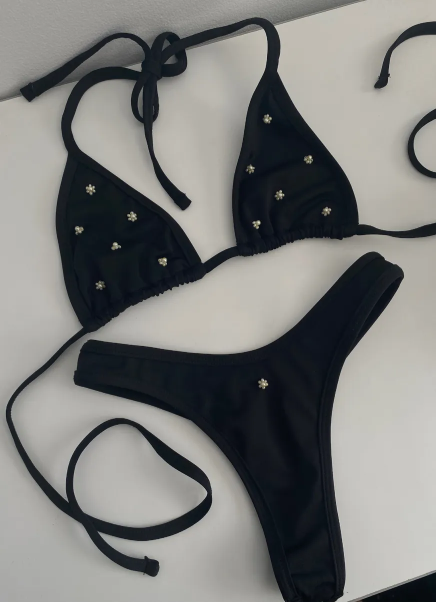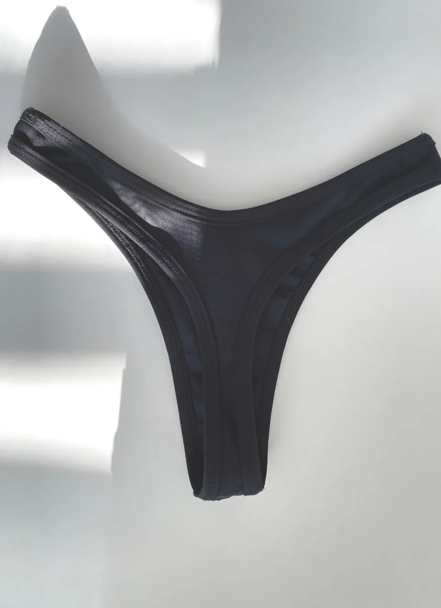 Hand beaded bikini bottoms. Black with pearlescent beads. Two coverage options available.
