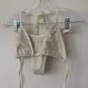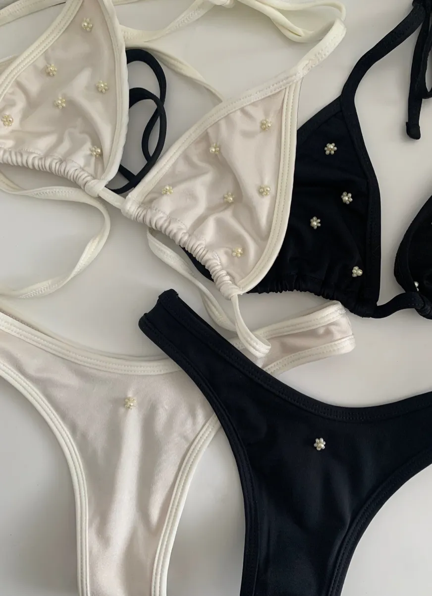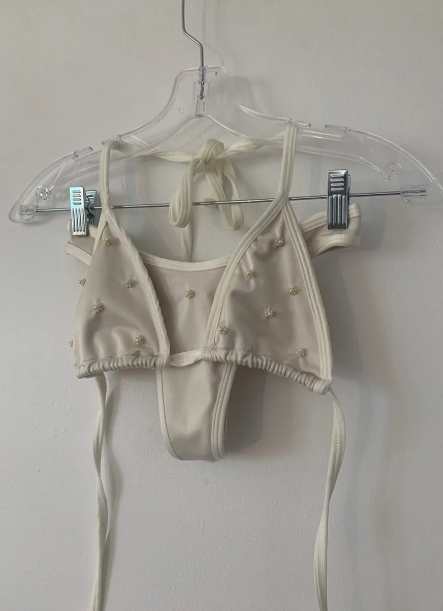 Hand beaded triangle bikini top. Ivory with pearlescent beads.