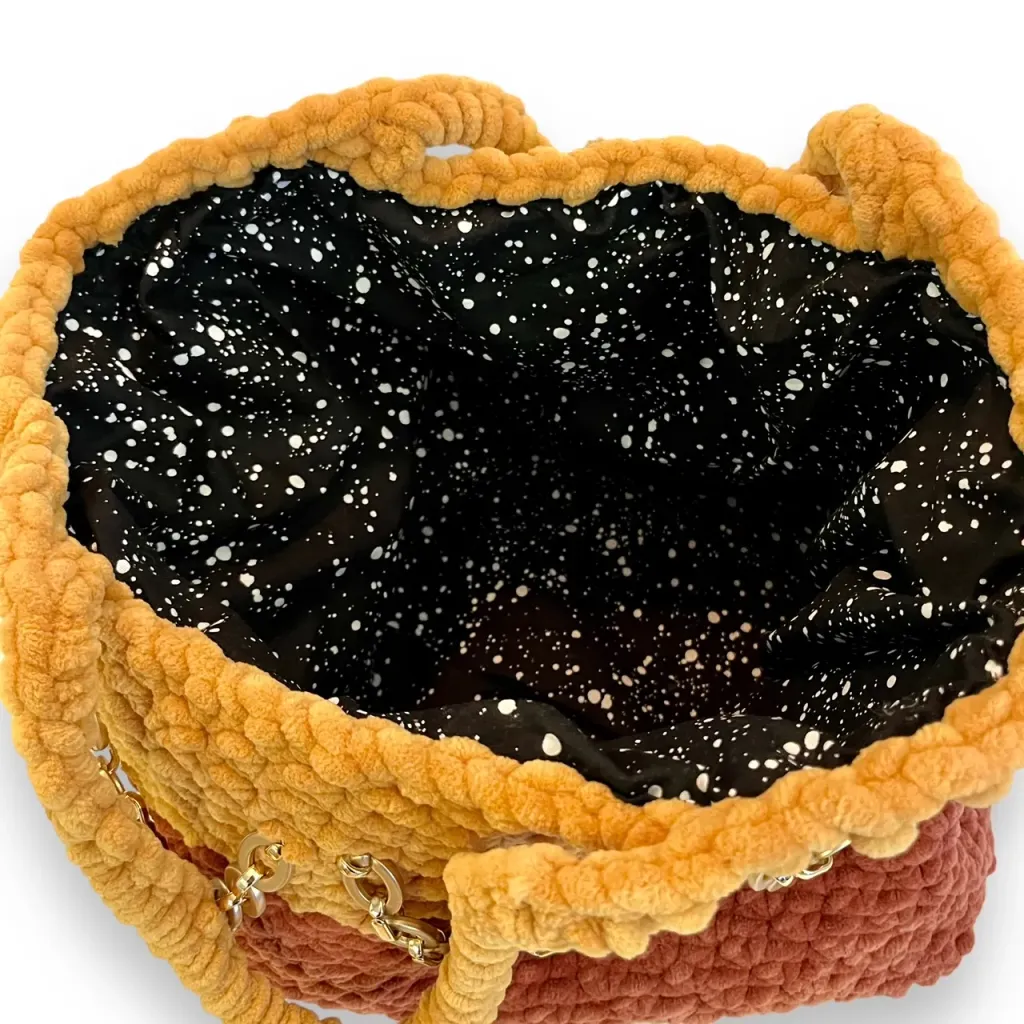 This Yellow Crochet Tote Bag is perfect for the Summer. Big enough to fit all your essential for a wonderful day at the beach. Crocheted and lined to be thick enough to hold all your valuables (keys, phones, cards, etc.) without you having to worry about anything falling out or slipping out.