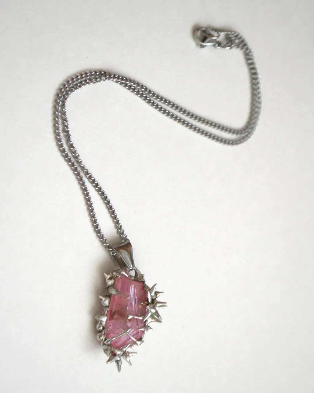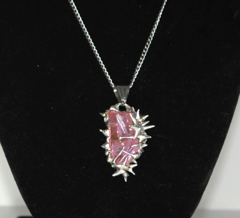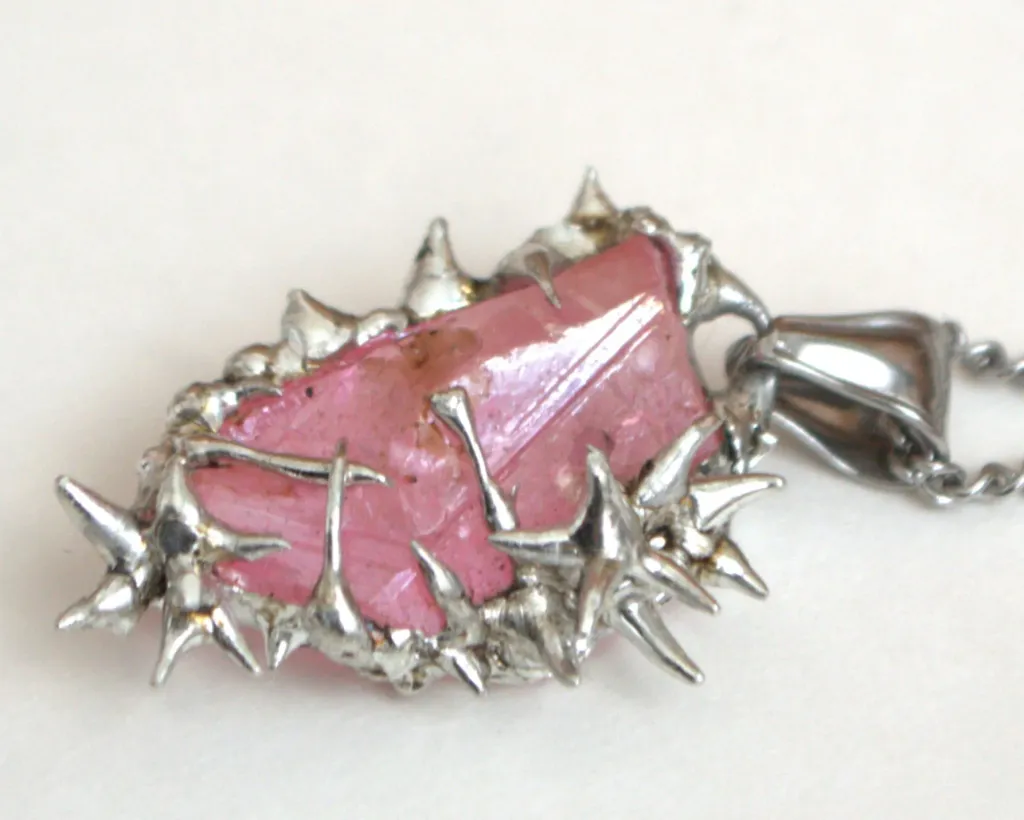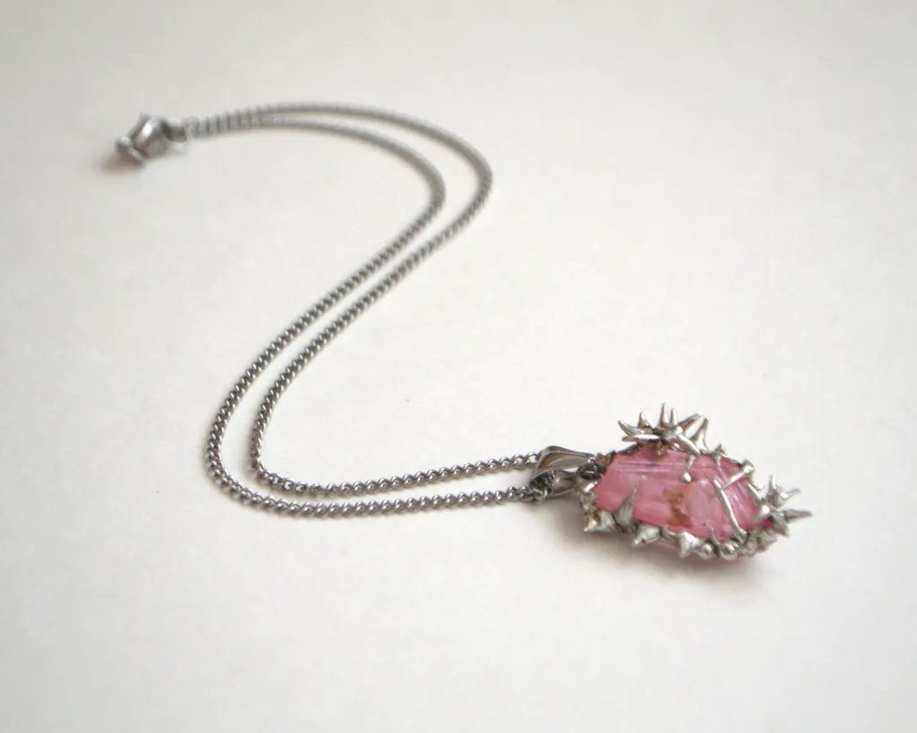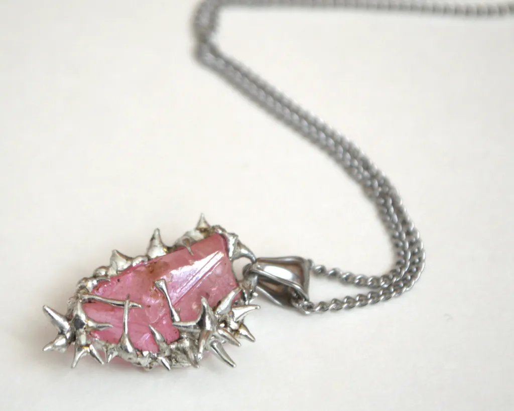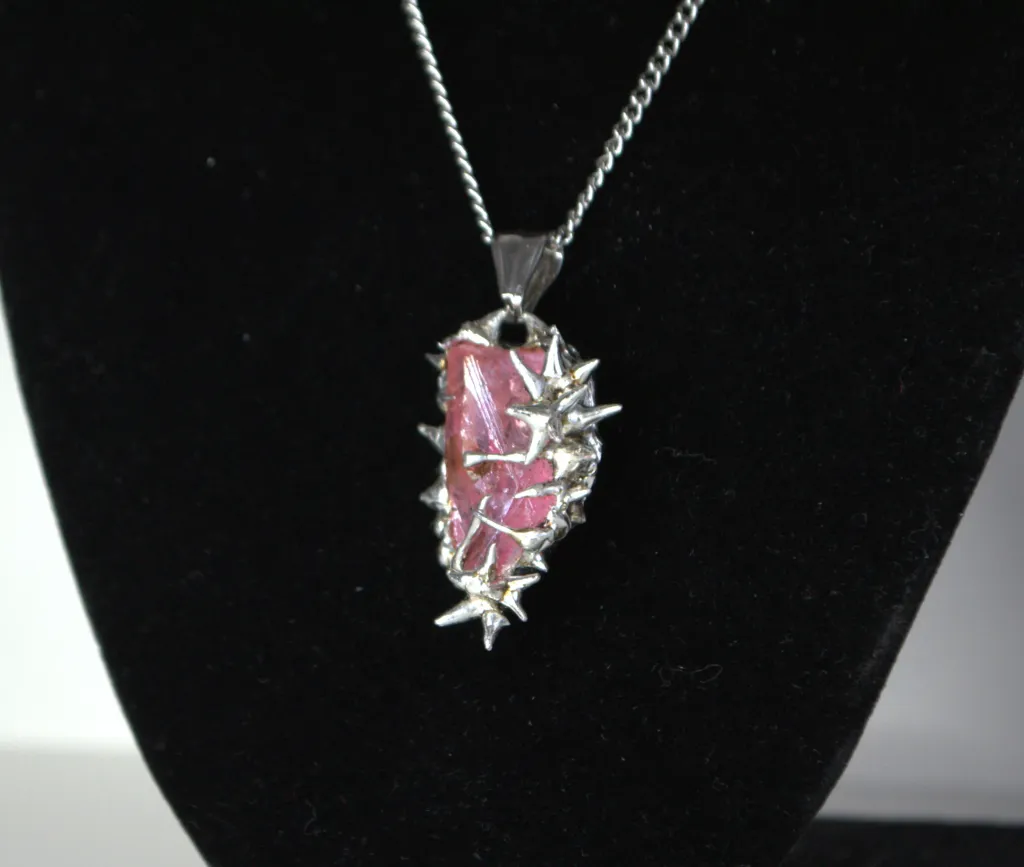 Collier unique fait à la main avec un pendentif en cristal recouvert d'épines en métal et de roses