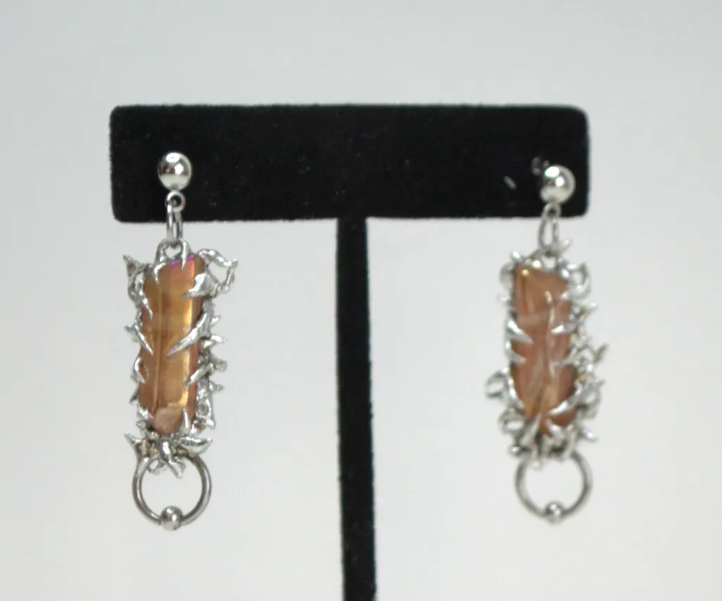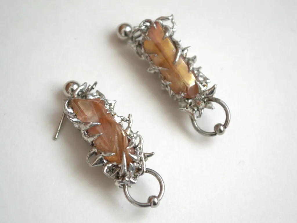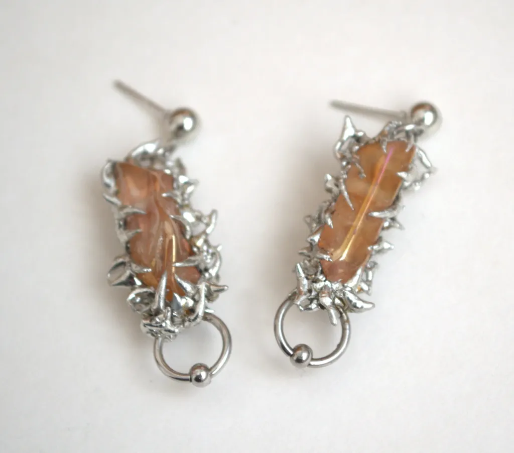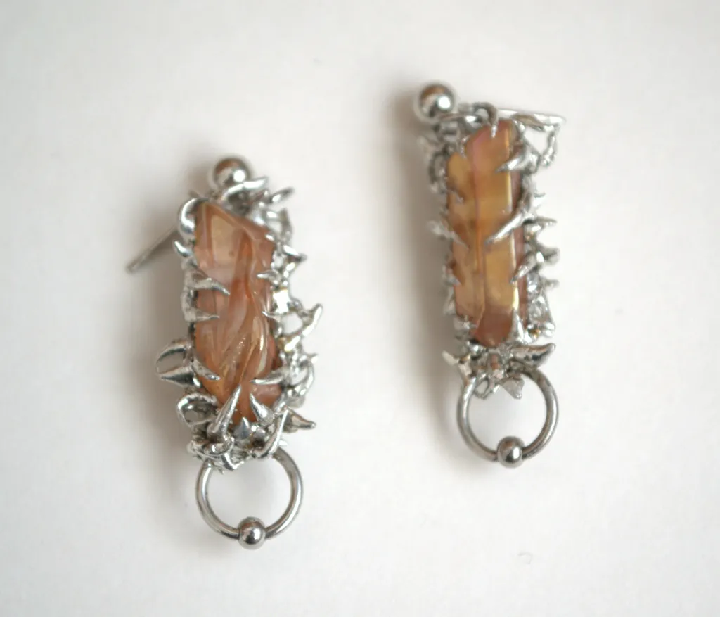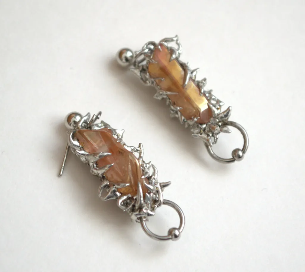 Boucles d'oreilles uniques avec des détails soudés et des piercings attachés