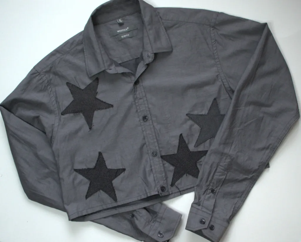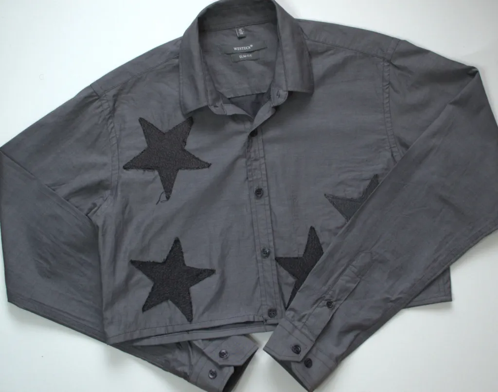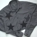 Boutonnage court avec écussons étoiles en denim.