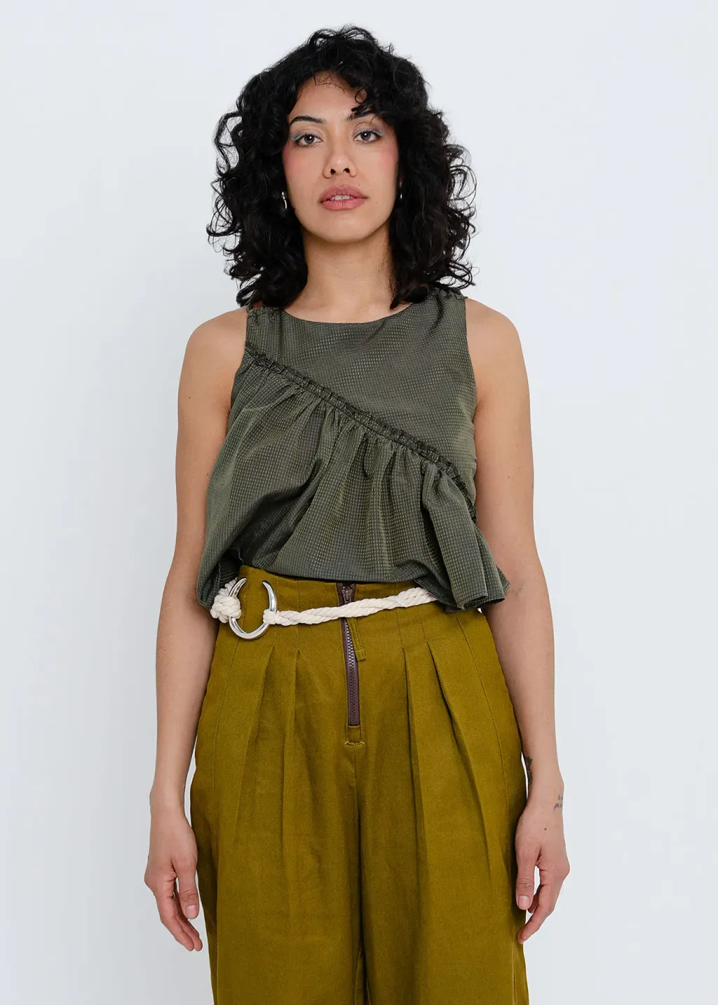 Ce débardeur se termine juste en dessous de la taille naturelle et s'associe parfaitement à notre pantalon taille haute "Josie"