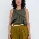 Voici notre nouveau top d'été, « Ganni ». Fabriqué dans un mélange léger de soie et de coton, ce débardeur est doté d'un panneau froncé en diagonale, de liens fermés aux épaules, d'un dos ajusté et d'une fermeture en trou de serrure au dos.