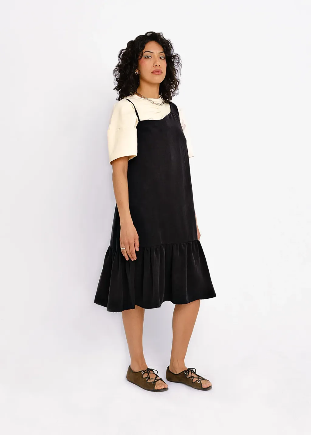 Voici notre toute nouvelle robe d'été en cupro fluide, conçue à la fois pour le style et le confort. Avec sa silhouette flatteuse au genou, sa jupe froncée, ses bretelles multi-tailles et son encolure ondulée à la fois ludique et chic, cette robe est parfaite seule ou superposée à un t-shirt pour les journées plus fraîches.