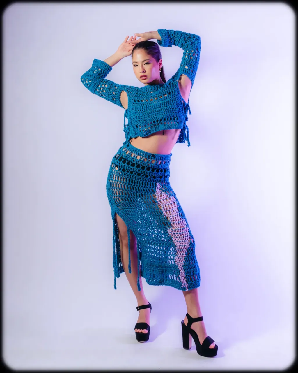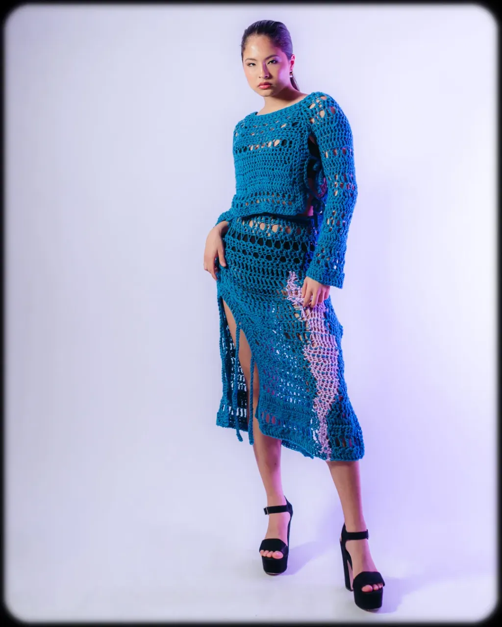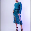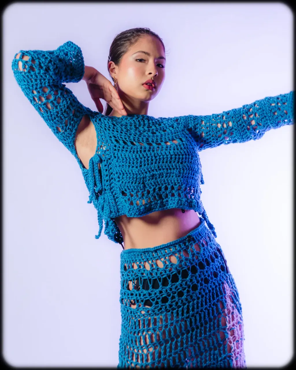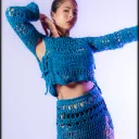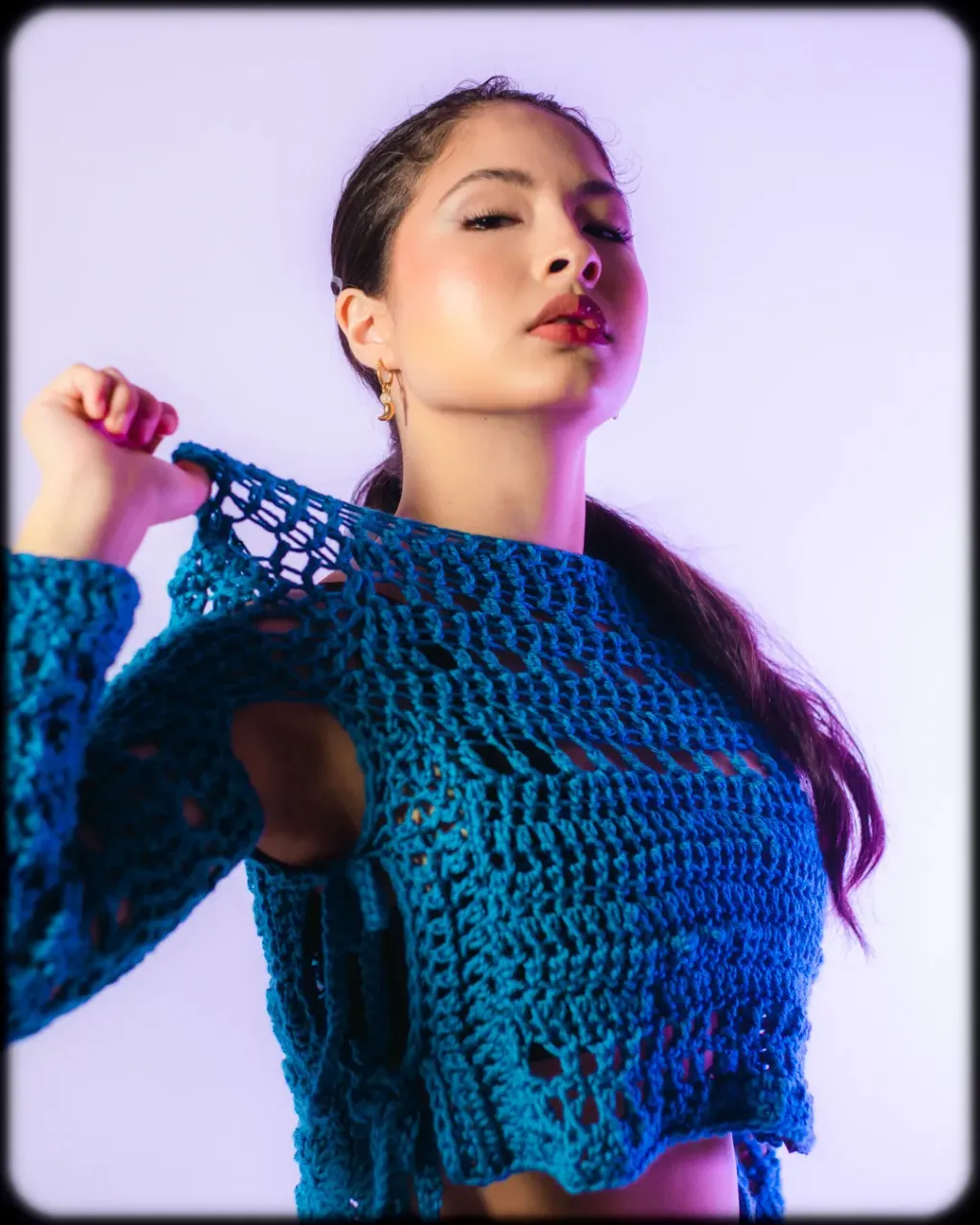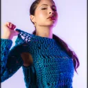 Pull/ top au crochet fait main avec du fil de laine mélangée.