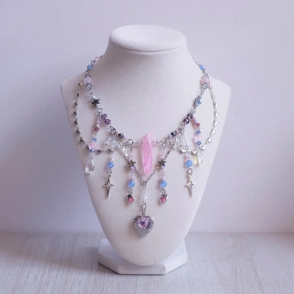 Plongez dans un monde électrisant avec ce collier parure en acier inoxydable argenté, inspiré du charisme et du charme du personnage d’Ahri dans sa version ‘‘K/DA all out’’ de League of Legends. Ce collier capture l'essence même de la célébration de l’art de la scène avec des pierres naturelles de quartz et d'hématite, reflétant la puissance et la sophistication du personnage emblématique. Chaque détail, des nuances argentées aux reflets chatoyants des pierres, évoque l'énergie vibrante et la magie de la scène. Portez ce collier pour rayonner de confiance et de style, et laissez-vous emporter par le glamour envoûtant de la pop-star Ahri.