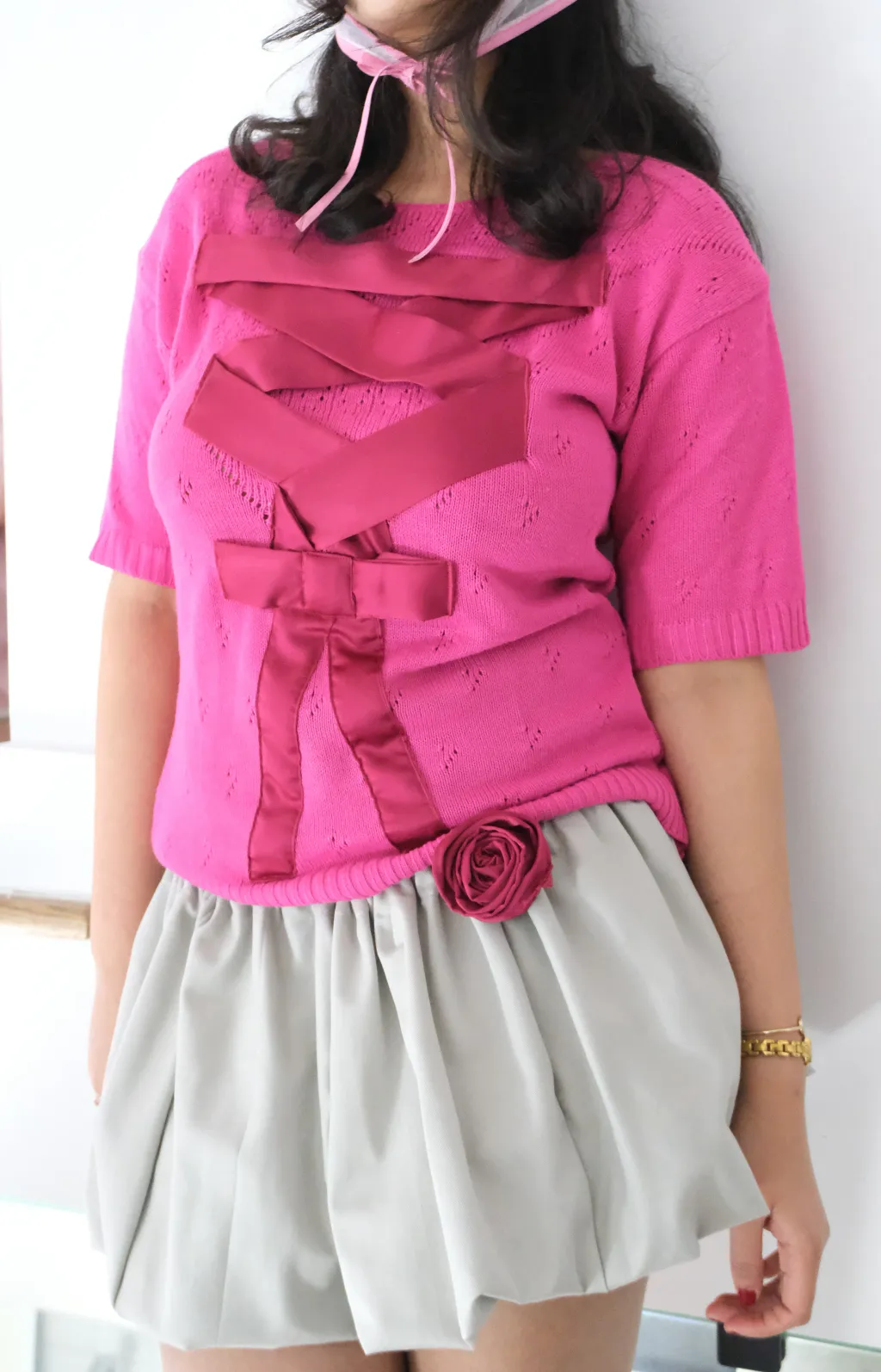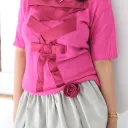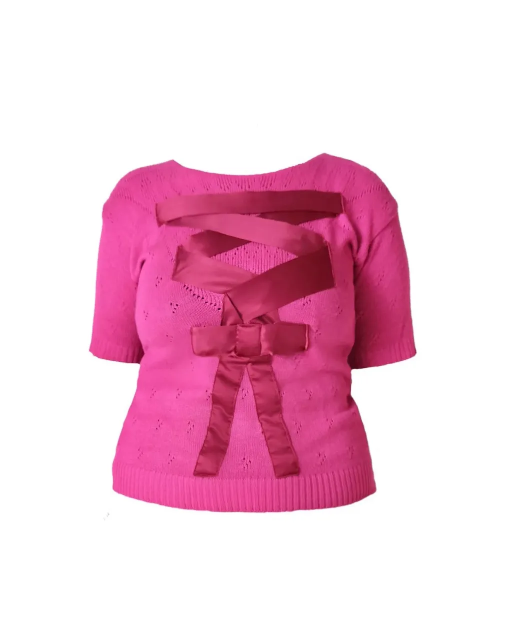 Chemise à manches courtes en tricot recyclé avec nœud en satin