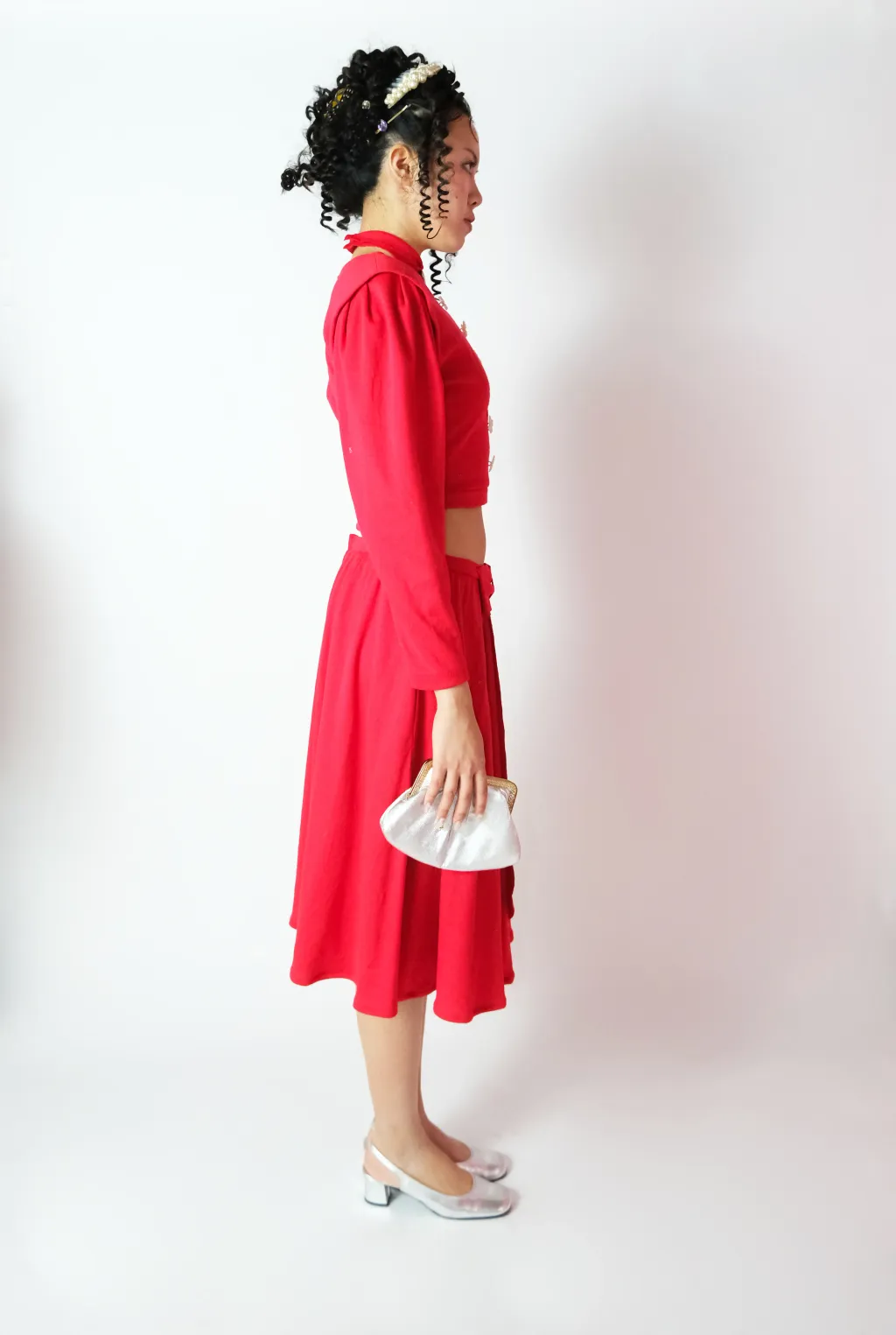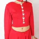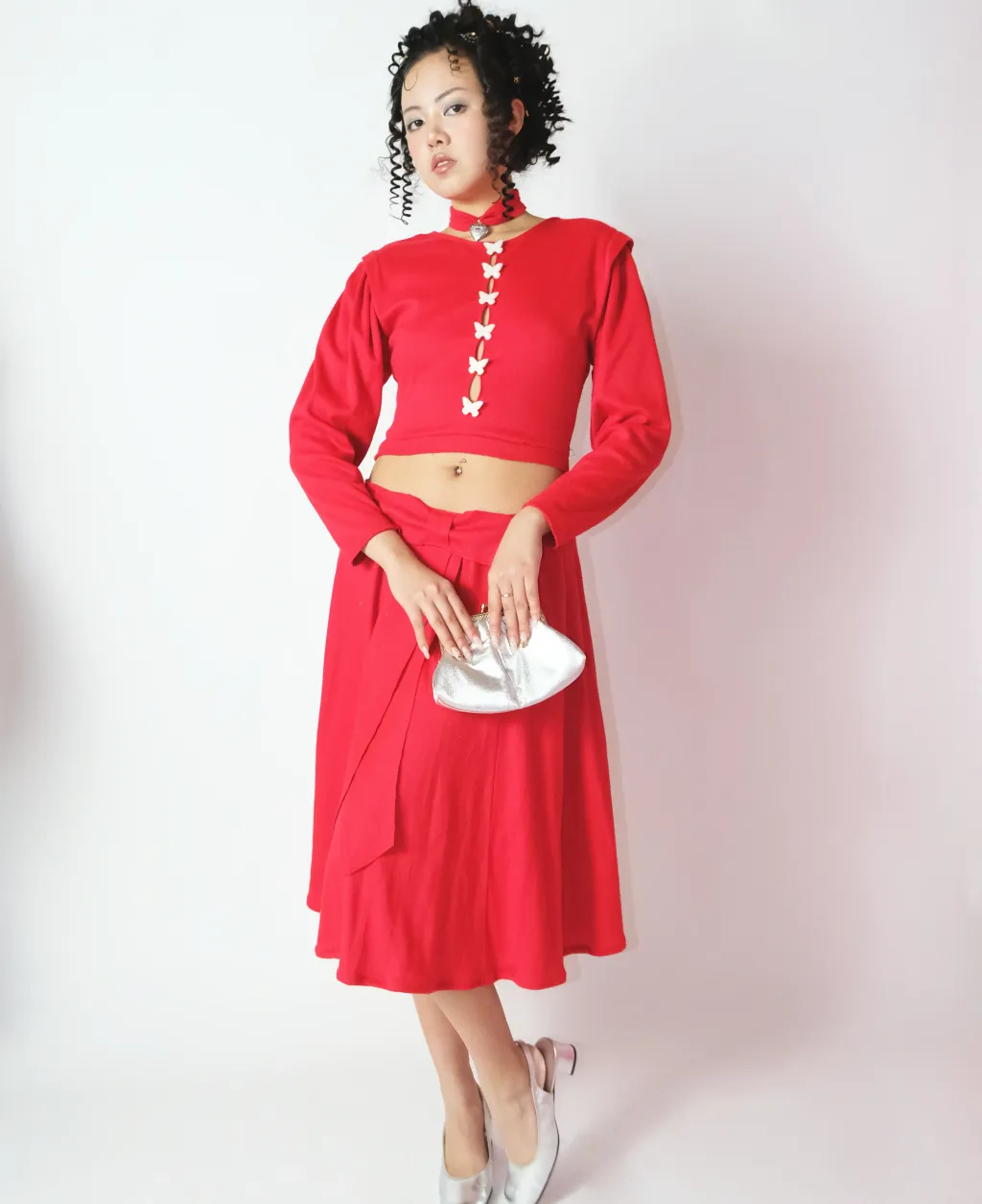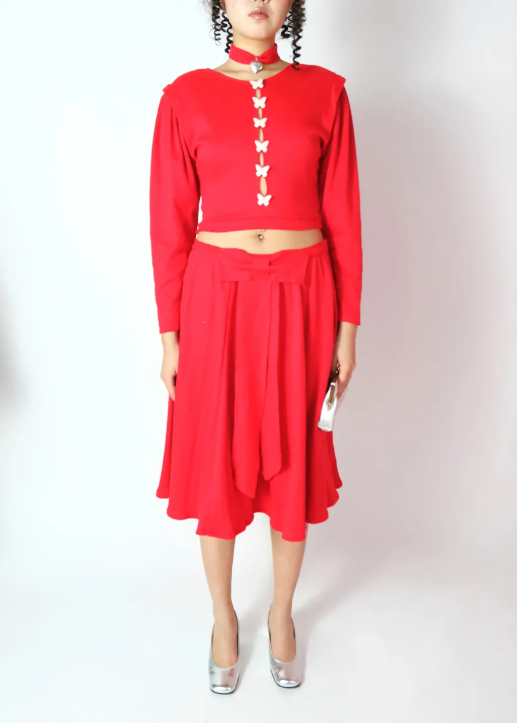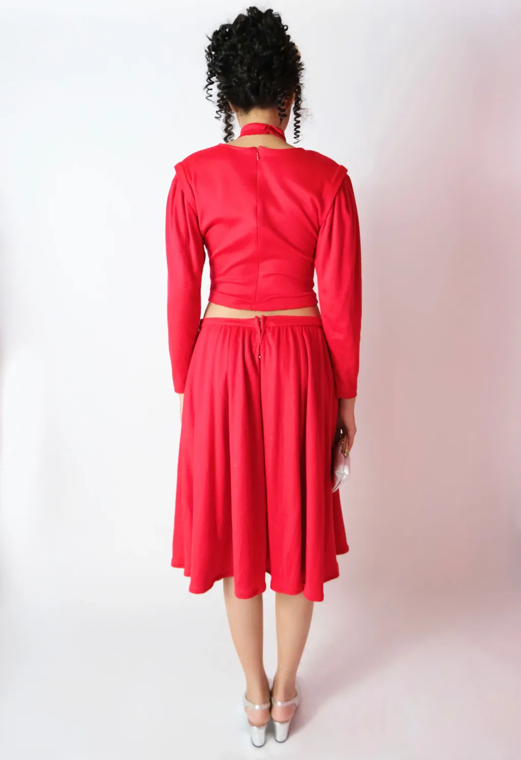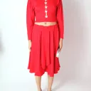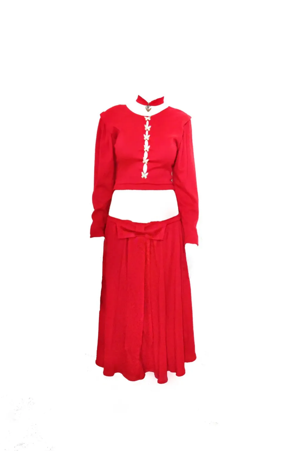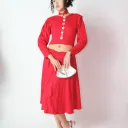 Ensemble manches longues + jupe longue + médaillon ras du cou rouge rubis recyclé
