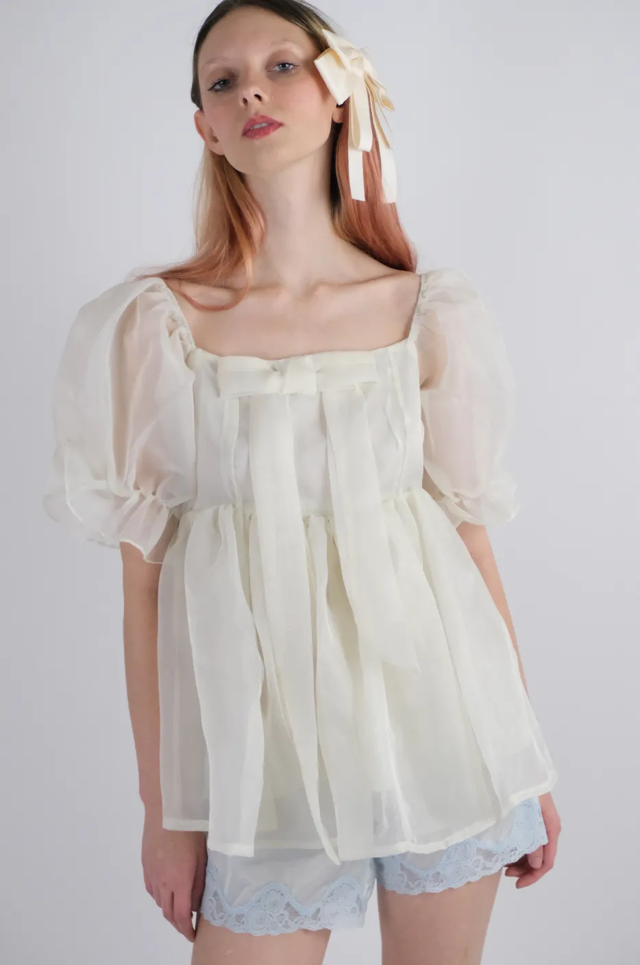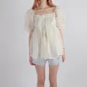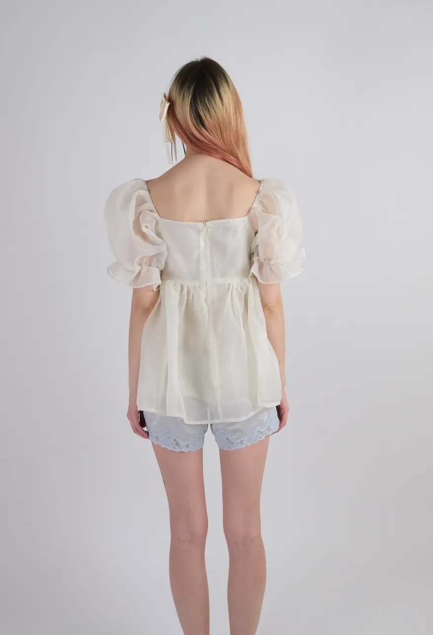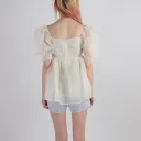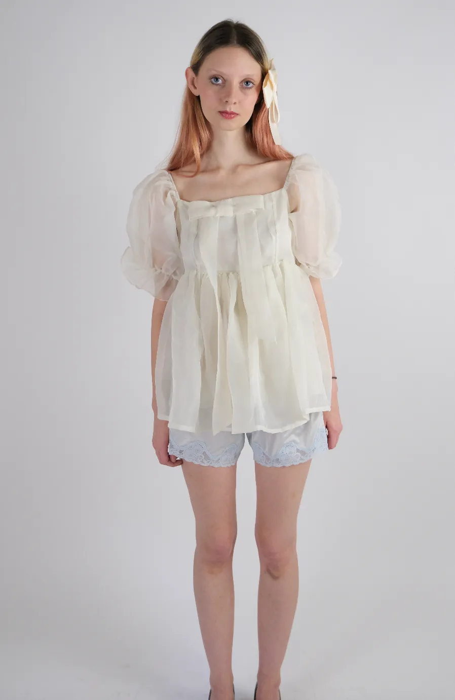 Top style nuisette en voile blanc antique recyclé avec manches bouffantes