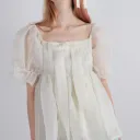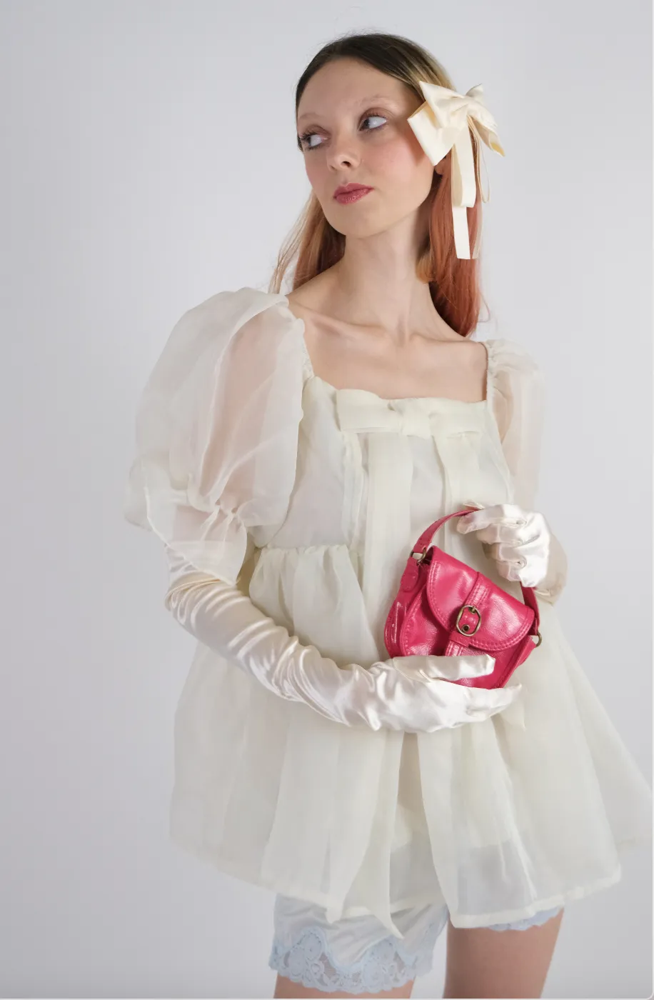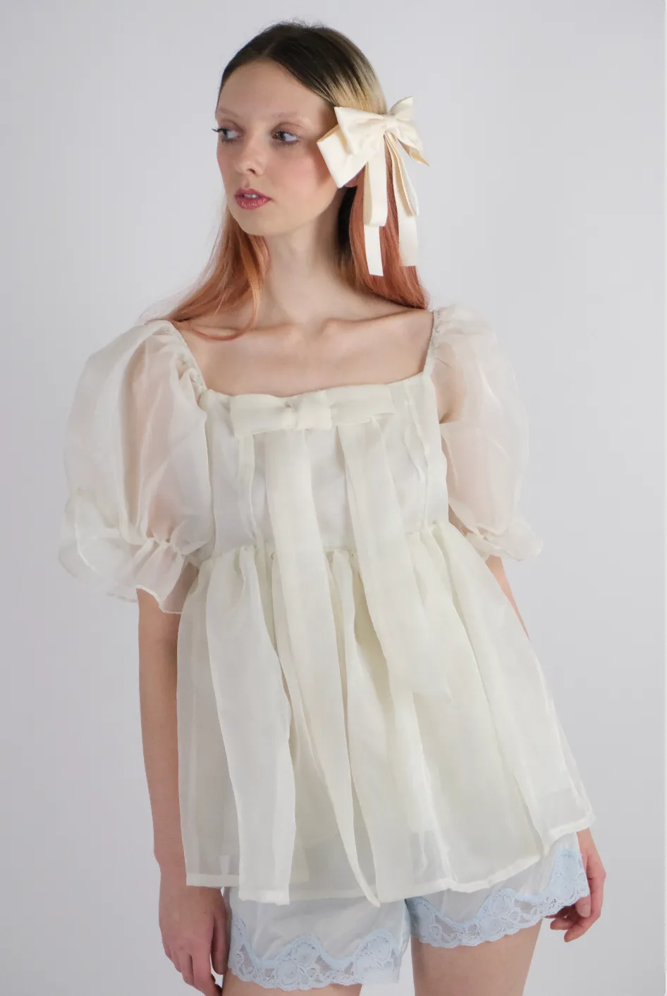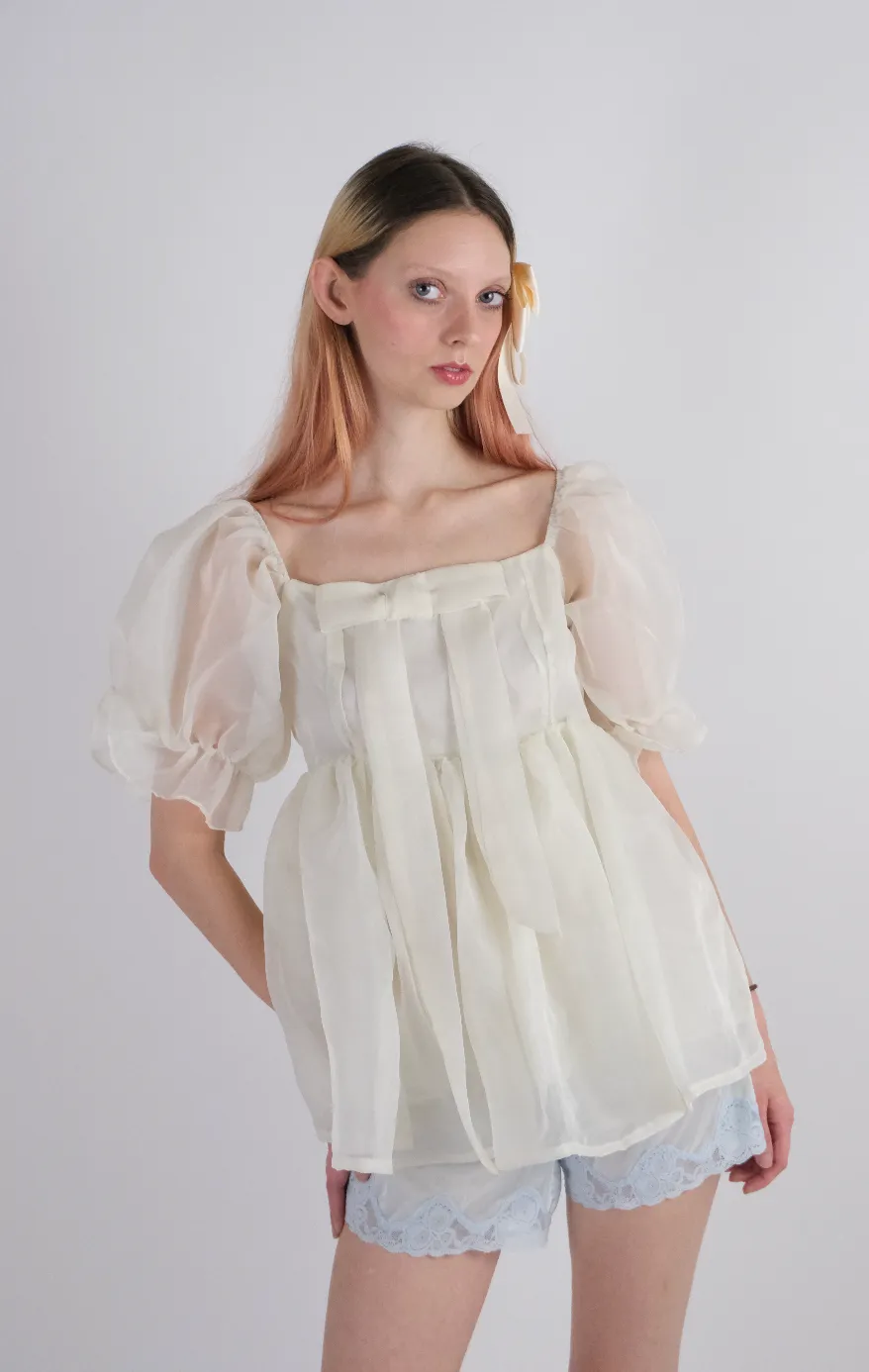 Top style nuisette en voile blanc antique recyclé avec manches bouffantes