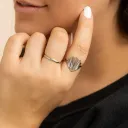 Pour garder le placage intacte le plus longtemps possible, il est important de garder la bague à l’abri de l’eau, du parfum, des lotions ou des produits ménagers. Le placage peut s’en aller progressivement et la bague deviendra argent.