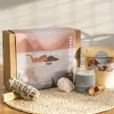 Ce coffret contient tout le nécessaire pour votre rituel de relaxation : un bâton de Palo Santo et de la sauge blanche pour la purification des énergies, du quartz rose pour le calme et la paix intérieure, des sels de bain odorants et une bougie parfumée.