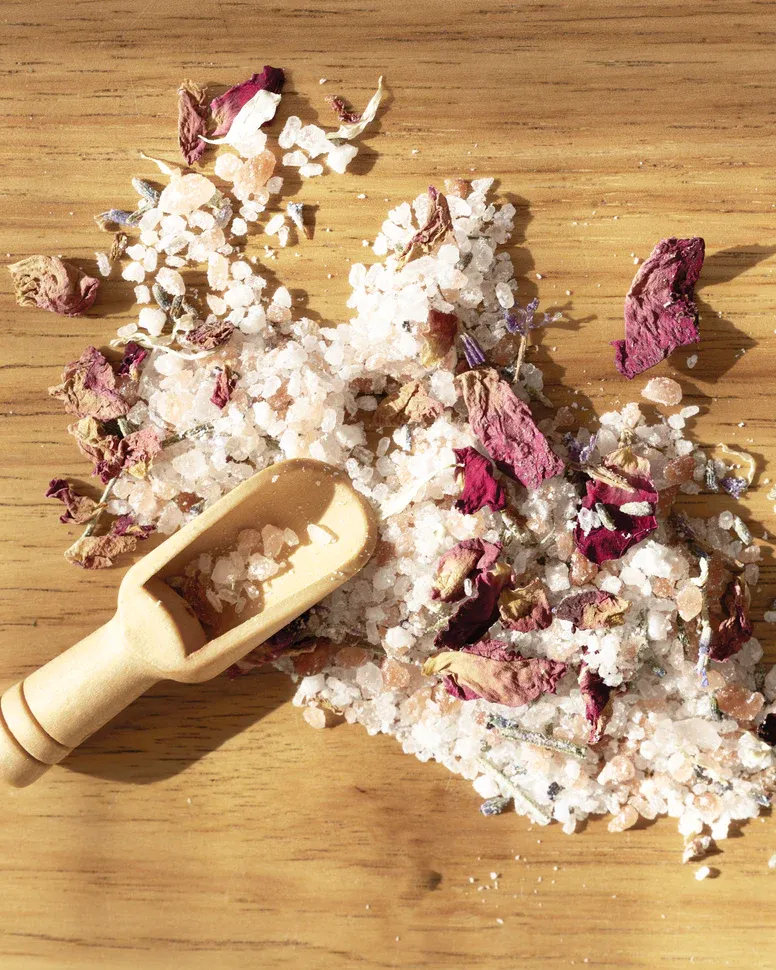 120 g de sel de bain floral à base de sel d'Himalaya et sel d'Epson pour une détente maximale.