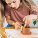 C’est aujourd’hui que vous mettez la main à la pâte... ou plutôt à l’argile! Ce moment conçu spécialement pour vous représente l’occasion idéale pour fabriquer les pots qui accueilleront les bougies que vous aurez faites vous-même. Vous verrez ! La fierté créatrice devient encore plus grande lorsqu’on se salit les mains!