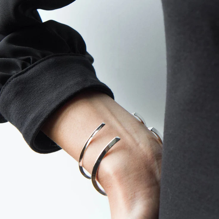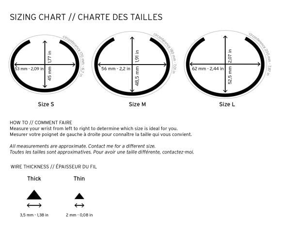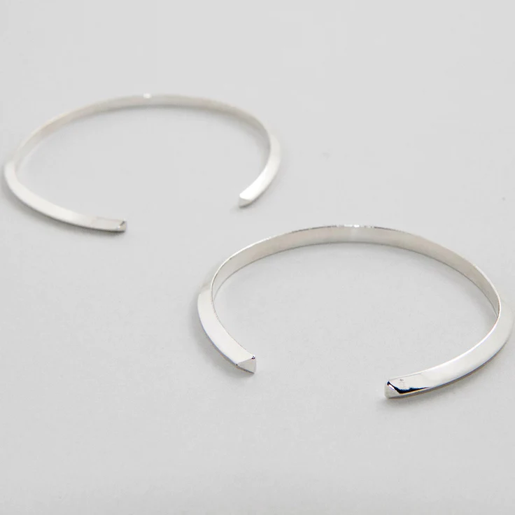 Le bracelet Ouvert Angle est formé à partir d’un fil de forme triangulaire. Fait en argent, ce bracelet manchette est disponible en deux options de fils : fine ou large. Portez-le seul, empilez-les ou combinez celui en laiton et en argent. Même si le bracelet est ouvert, n’ayez pas peur de le perdre. Le bracelet est flexible en pressant légèrement sur les côtés pour l’ouvrir ou le fermer. On l’enfile en passant l’ouverture sur le côté mince de votre poignet.