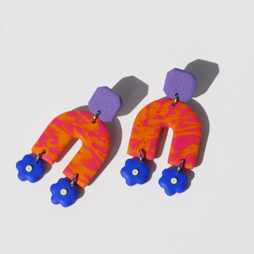 Boucles d'oreilles en argile polymère fabriquées à la main avec amour à Montréal.