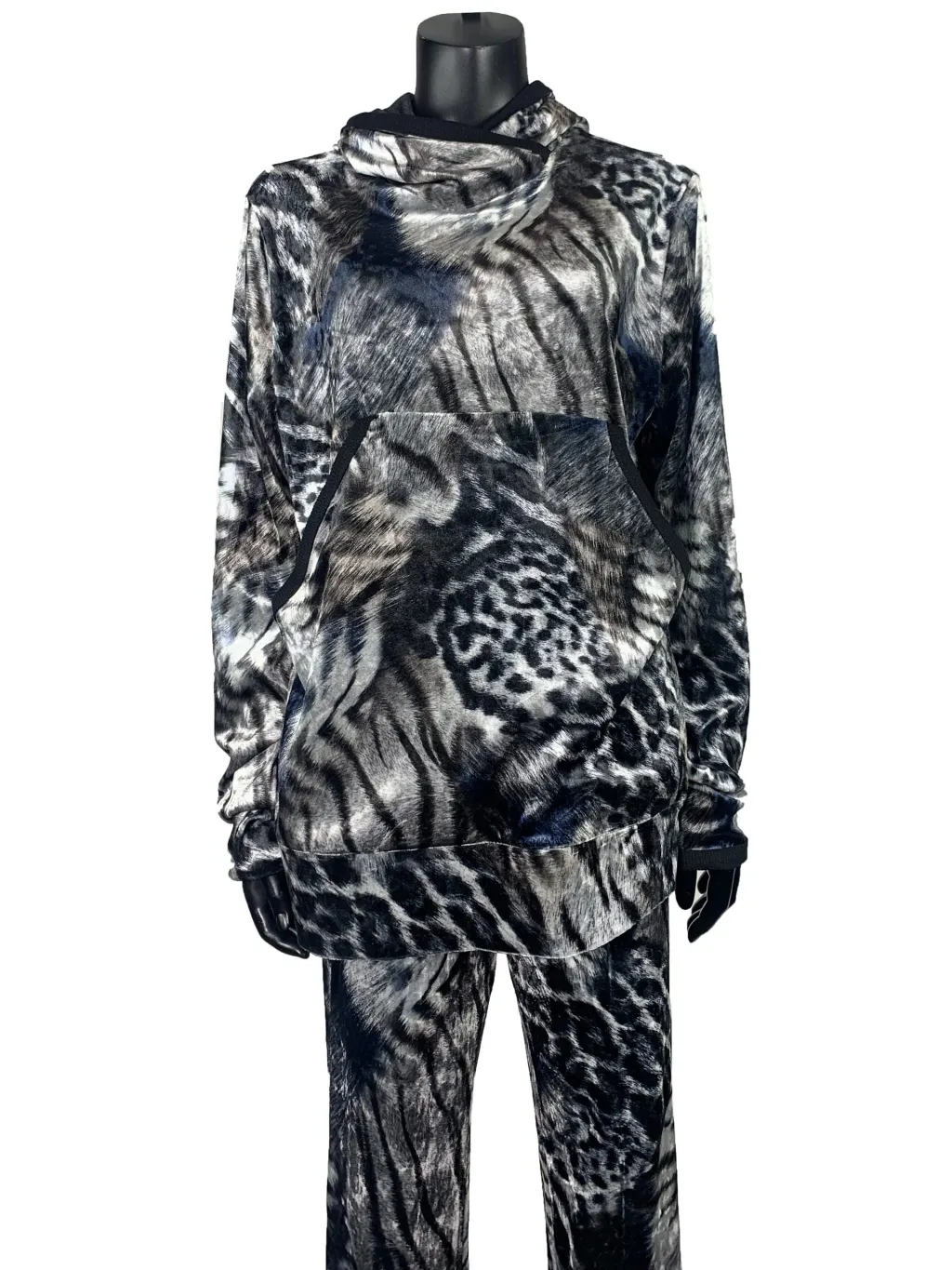Hoodie en velours, coupe ample, confortable et décontractée avec poche kangourou au devant et capuche.