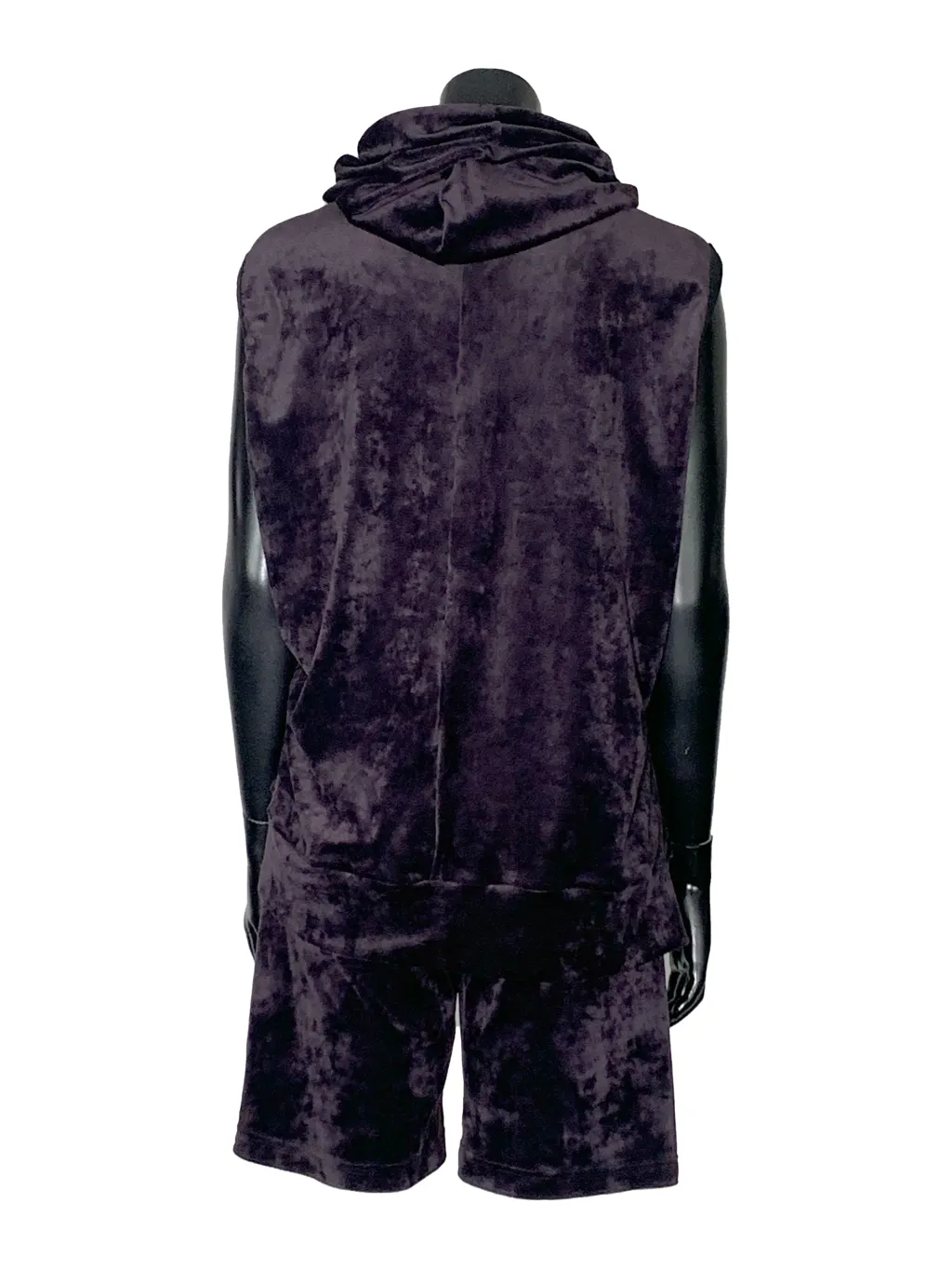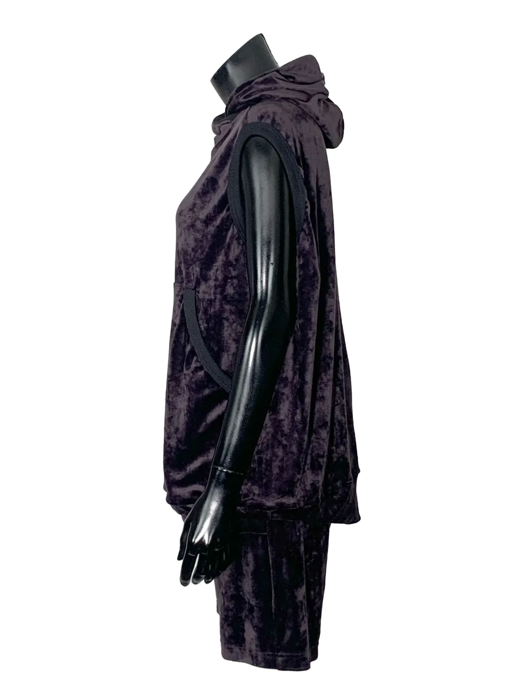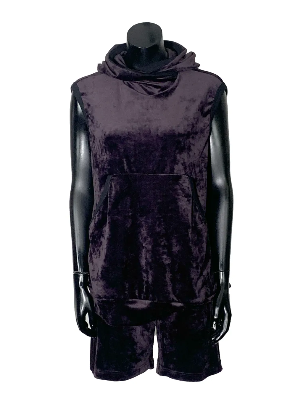 Hoodie sans manches en velours, coupe ample, confortable et décontractée avec poche kangourou au devant et capuche.