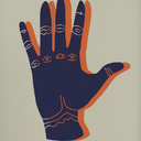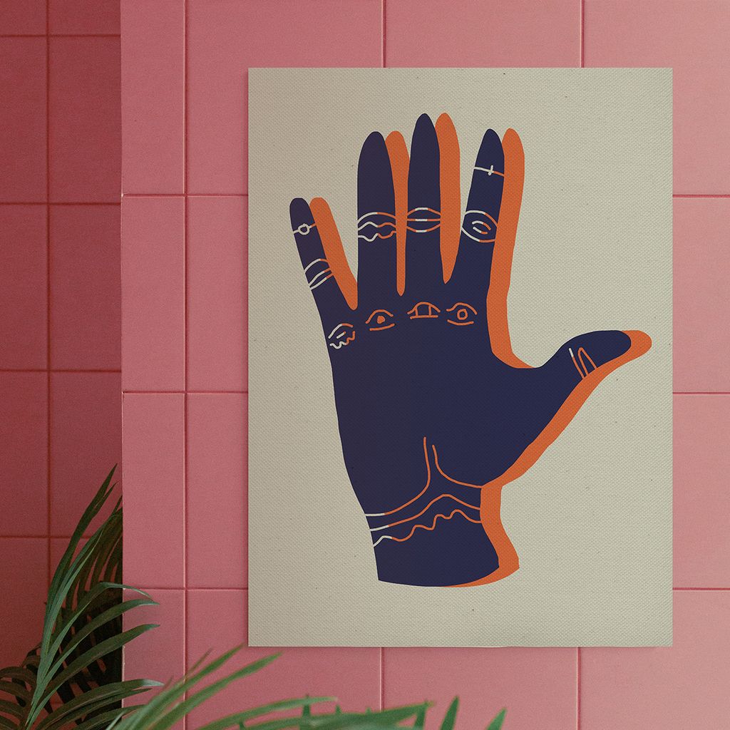 Affiche représentant une main bienfaisante. ‘Vérité’ vous invite à faire face à la vie sans regrets et sans regarder en arrière. Oeuvre originale Dora Nola, signée et estampée au dos.