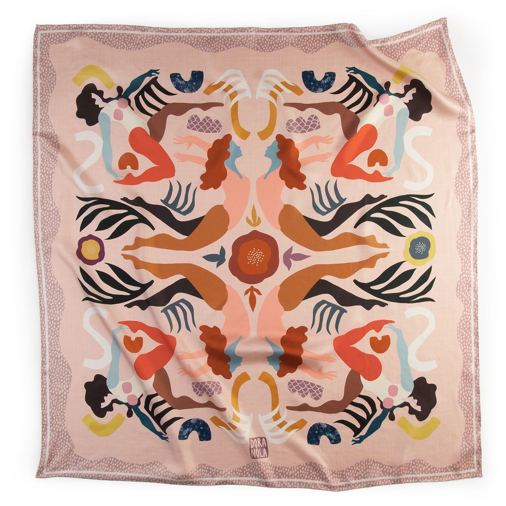 Cette œuvre d’art confectionné à partir de sergé de soie à 100% avec ses ourlets roulés à la main est inspirée de la culture otomi. Elle représente de magnifiques silhouettes de femmes naturelles et libres. L’œuvre original de Dora Nola trace le début d'un voyage incroyable auquel vous êtes conviés. Un classique, un incontournable. Le foulard en soie est un must dans toutes les garde-robes.