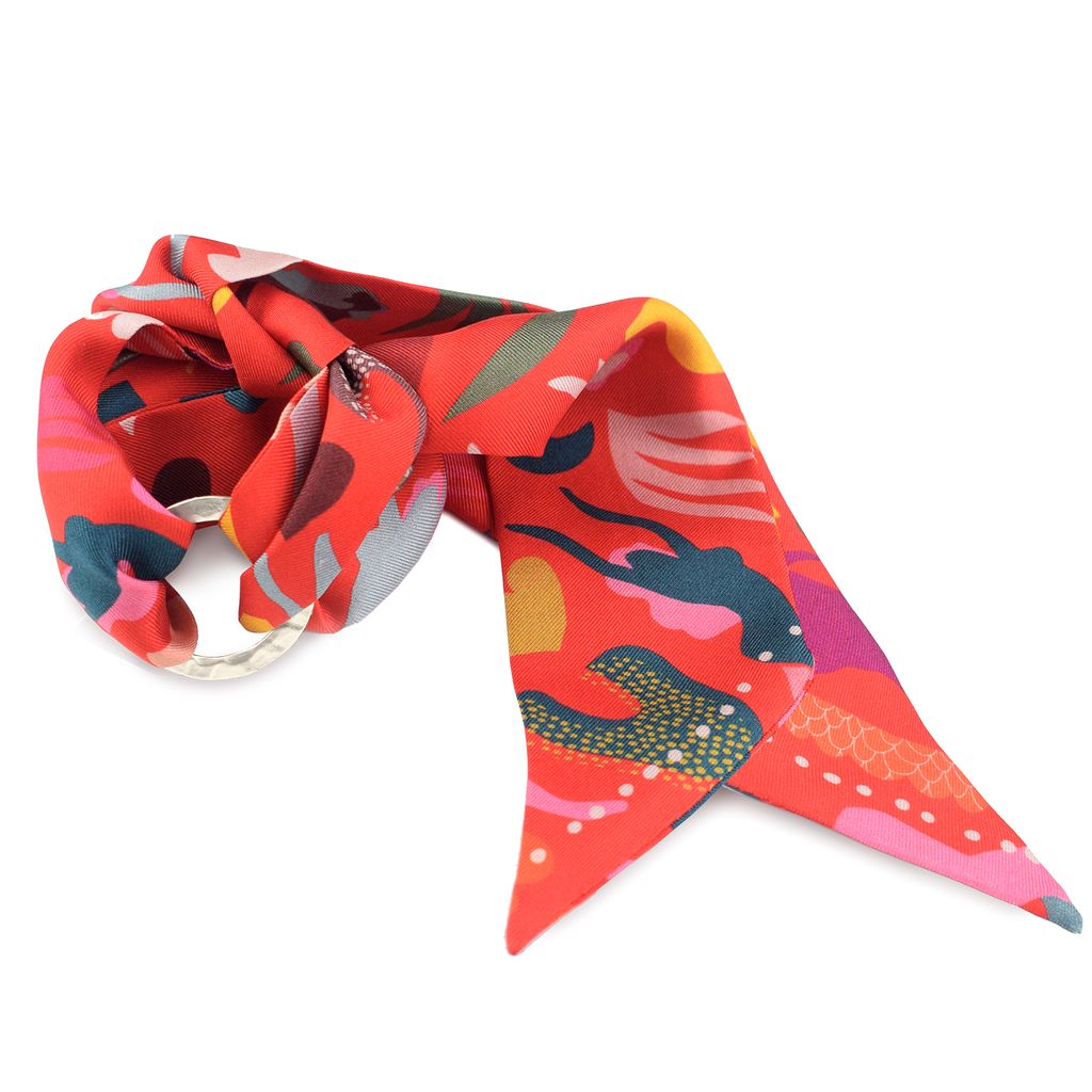 Confectionné en soie 100%, l'imprimé 'Jusqu'au Bout' de Dora Nola est vif et somptueux, avec des silhouettes flottant dans un mélange de formes et de cœurs éclectiques. D'une couleur rouge éclatante qui saura mettre du piquant à toute tenue!
